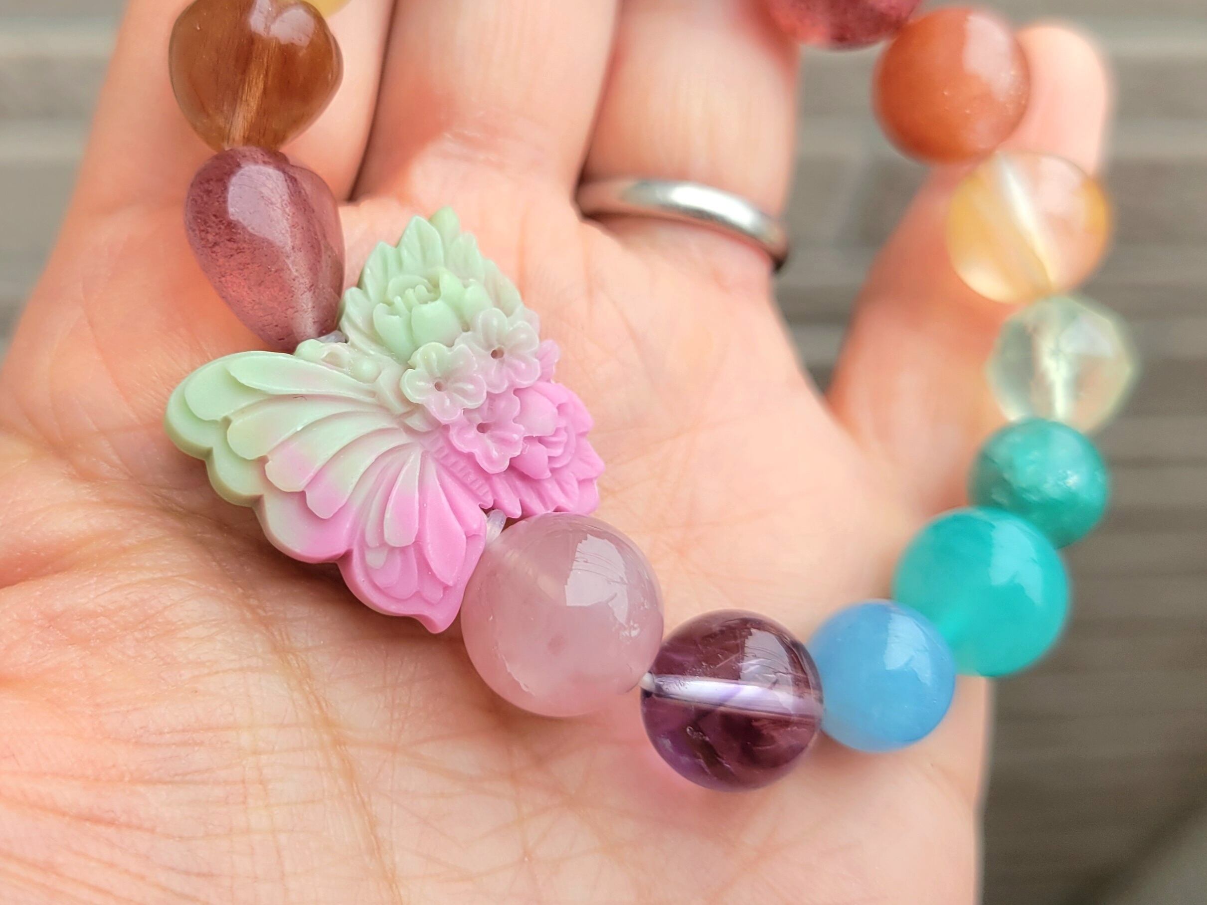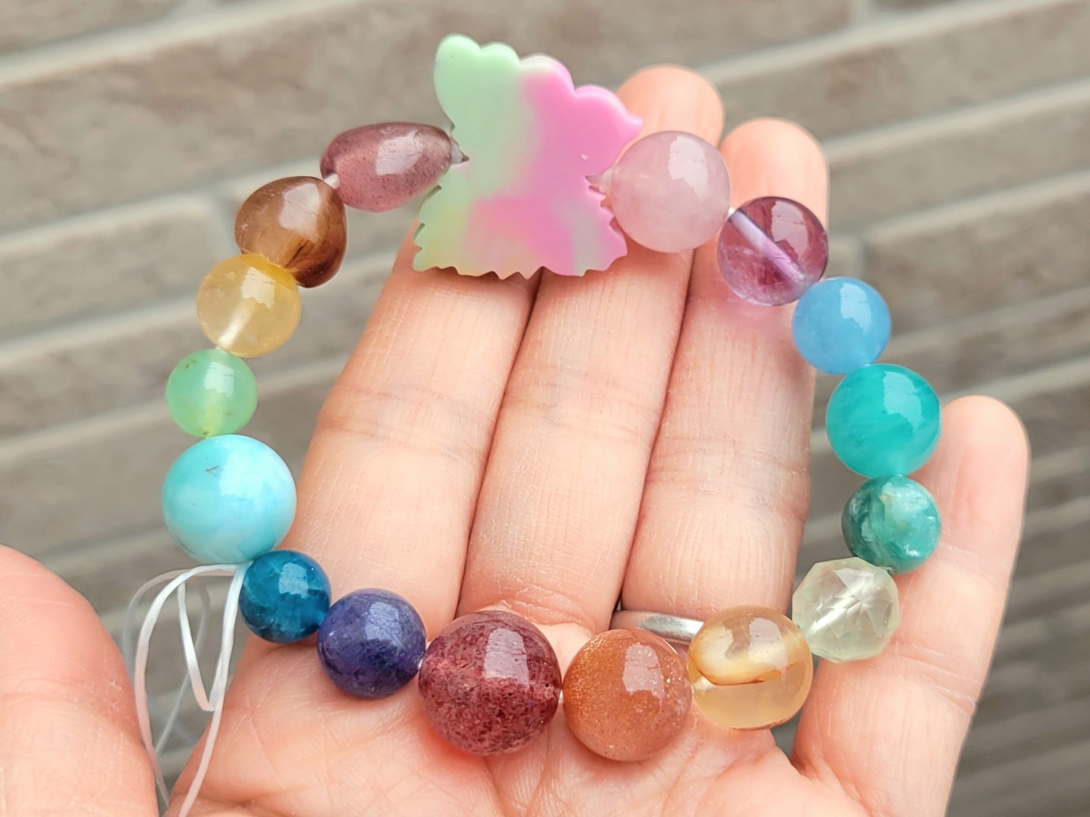 カラフル元気なブレスレットに優雅なバタフライが飛んでいます❤