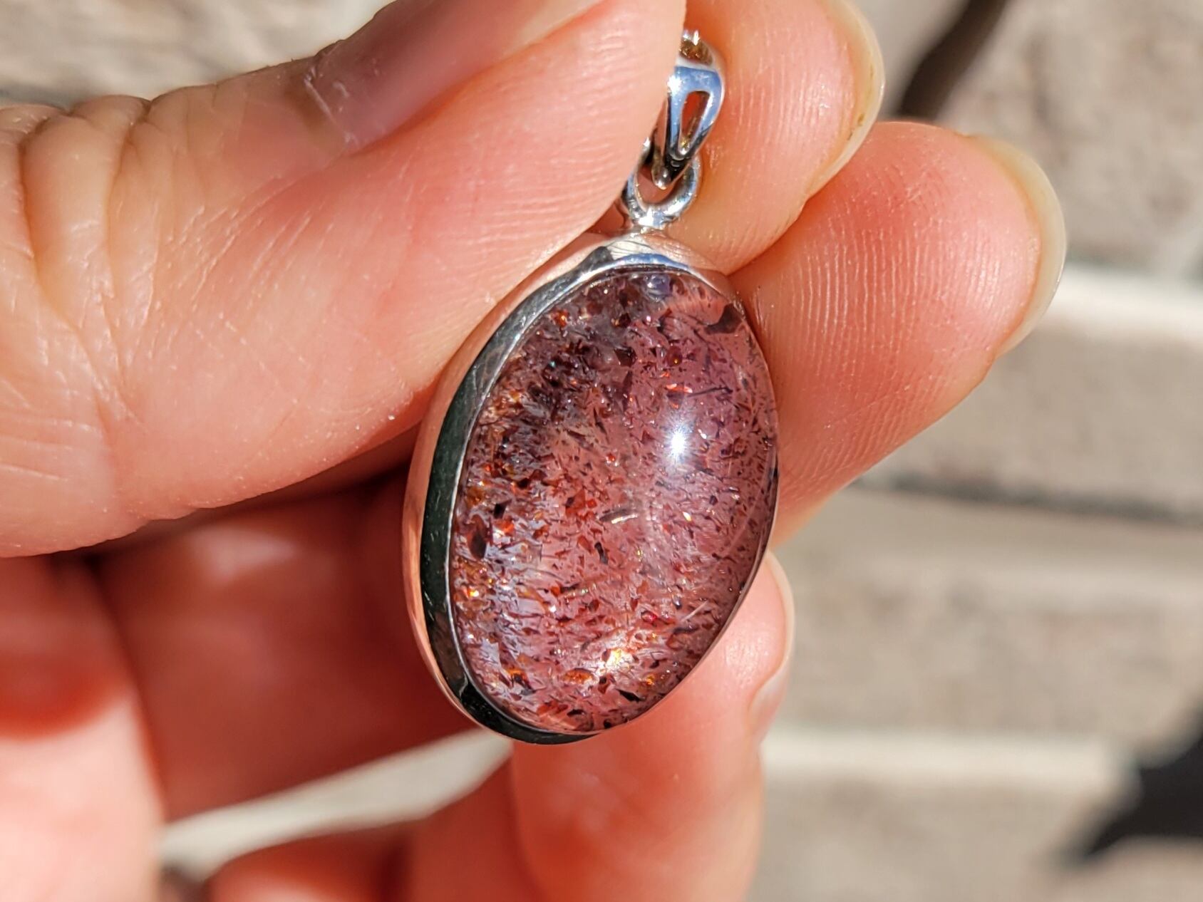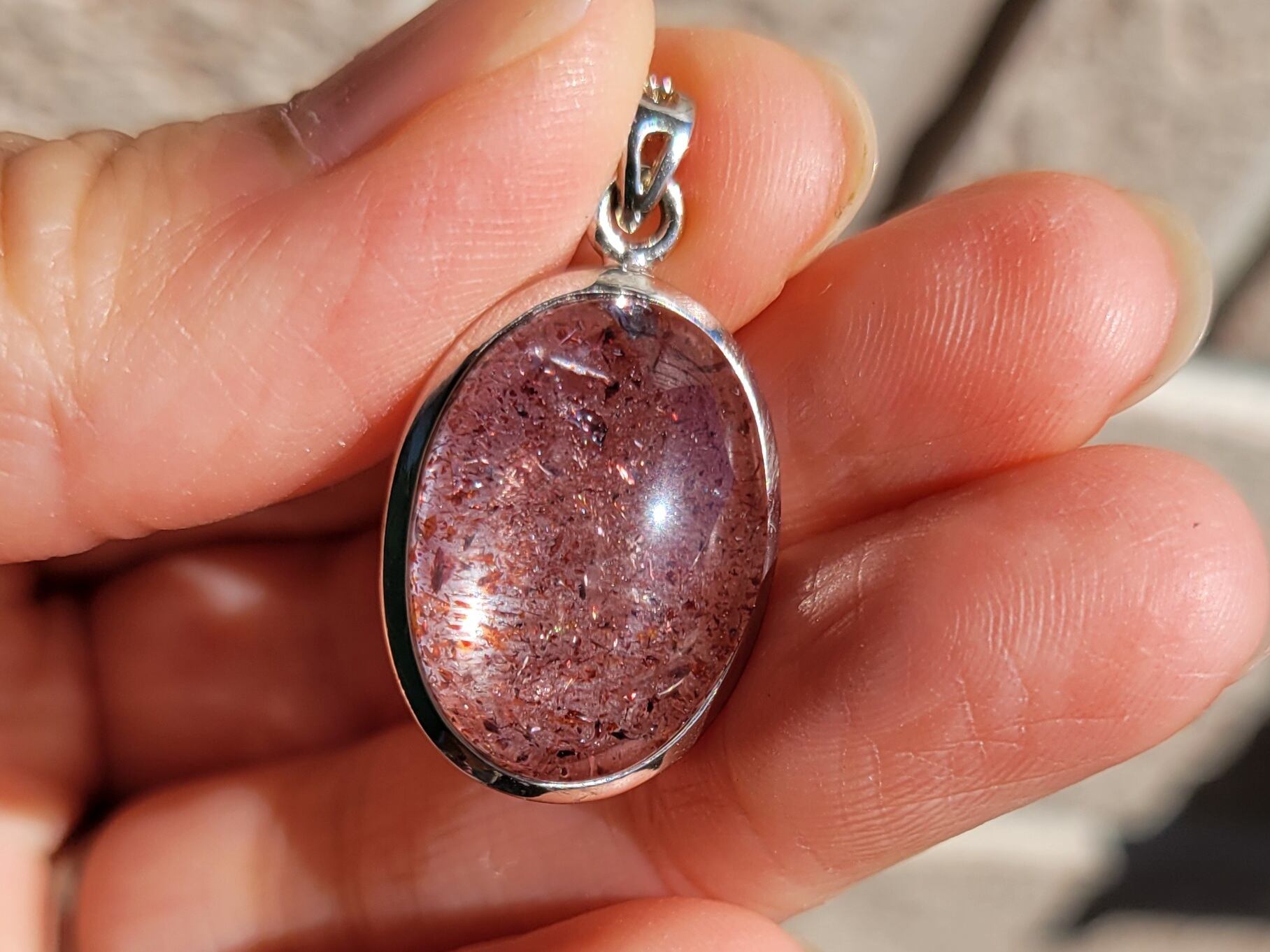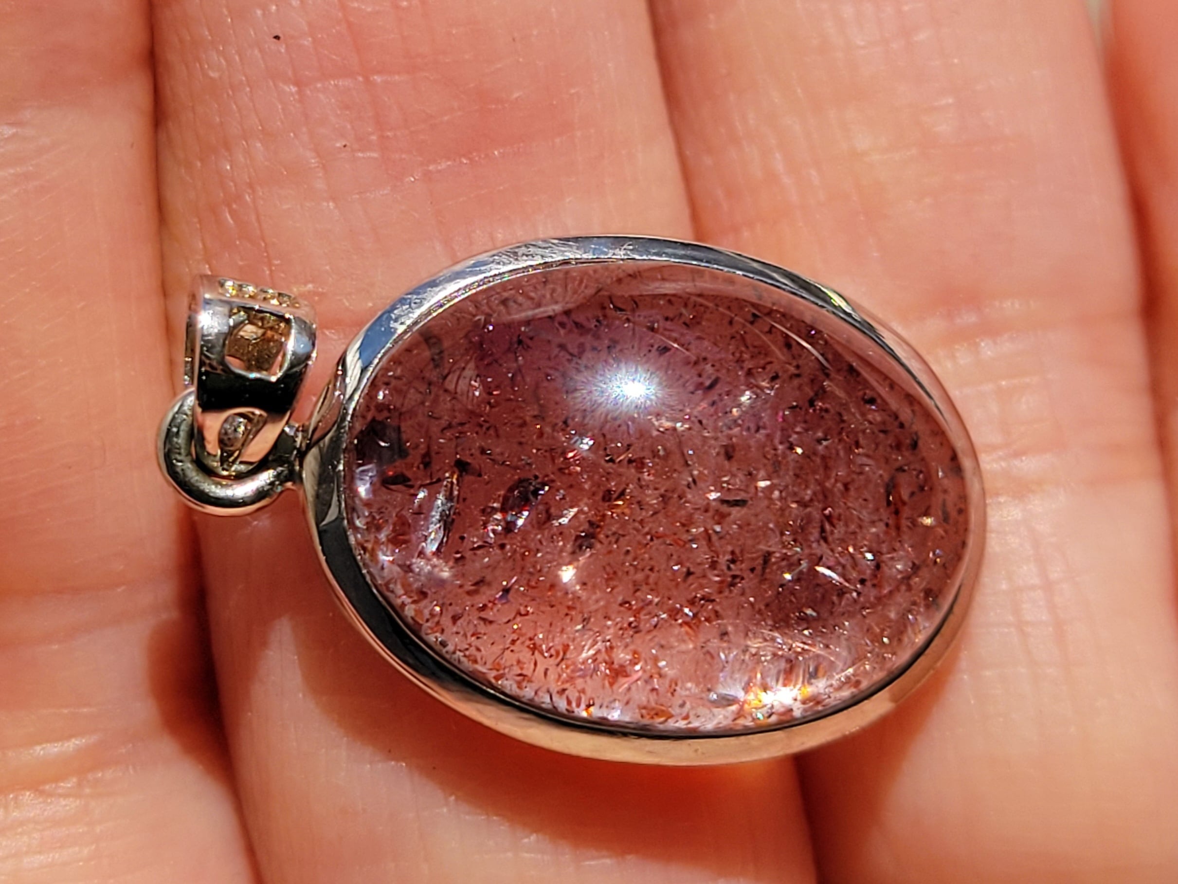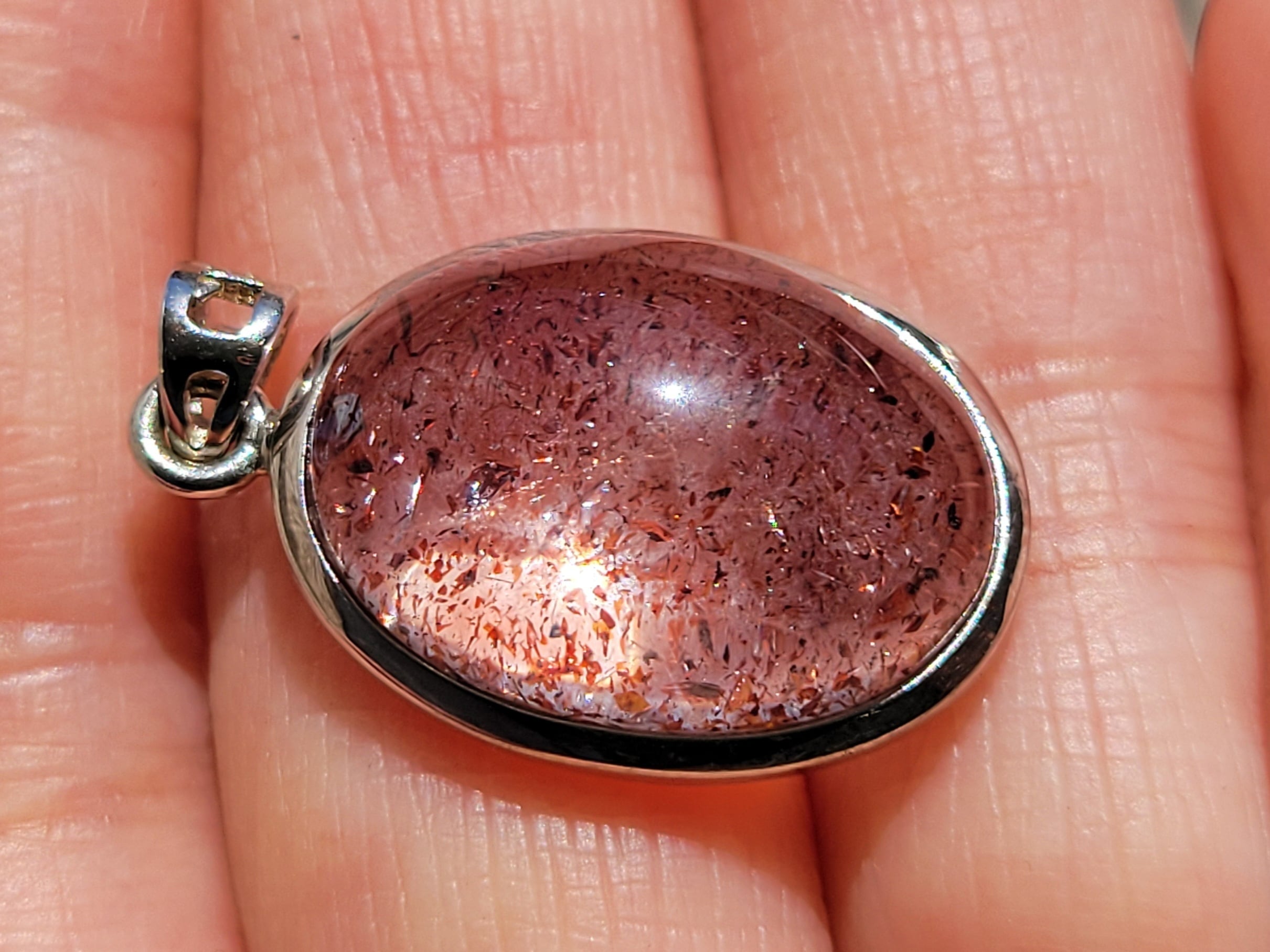透明度抜群のレピドクロサイトインクォーツオーバルペンダントトップシルバー925