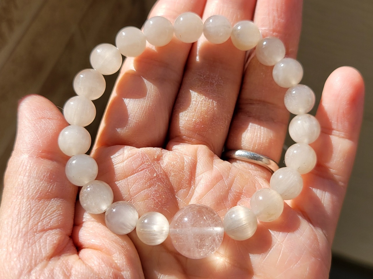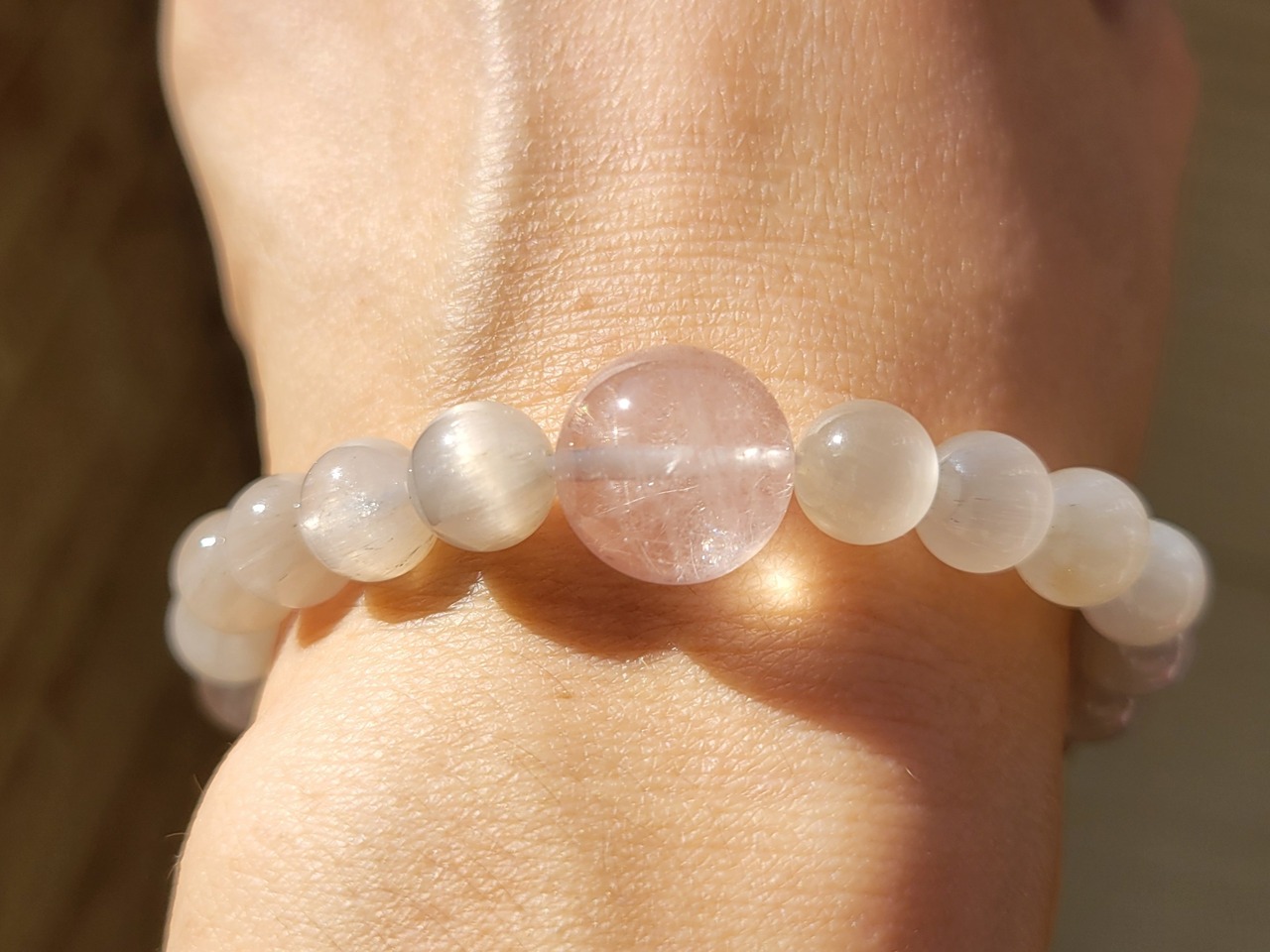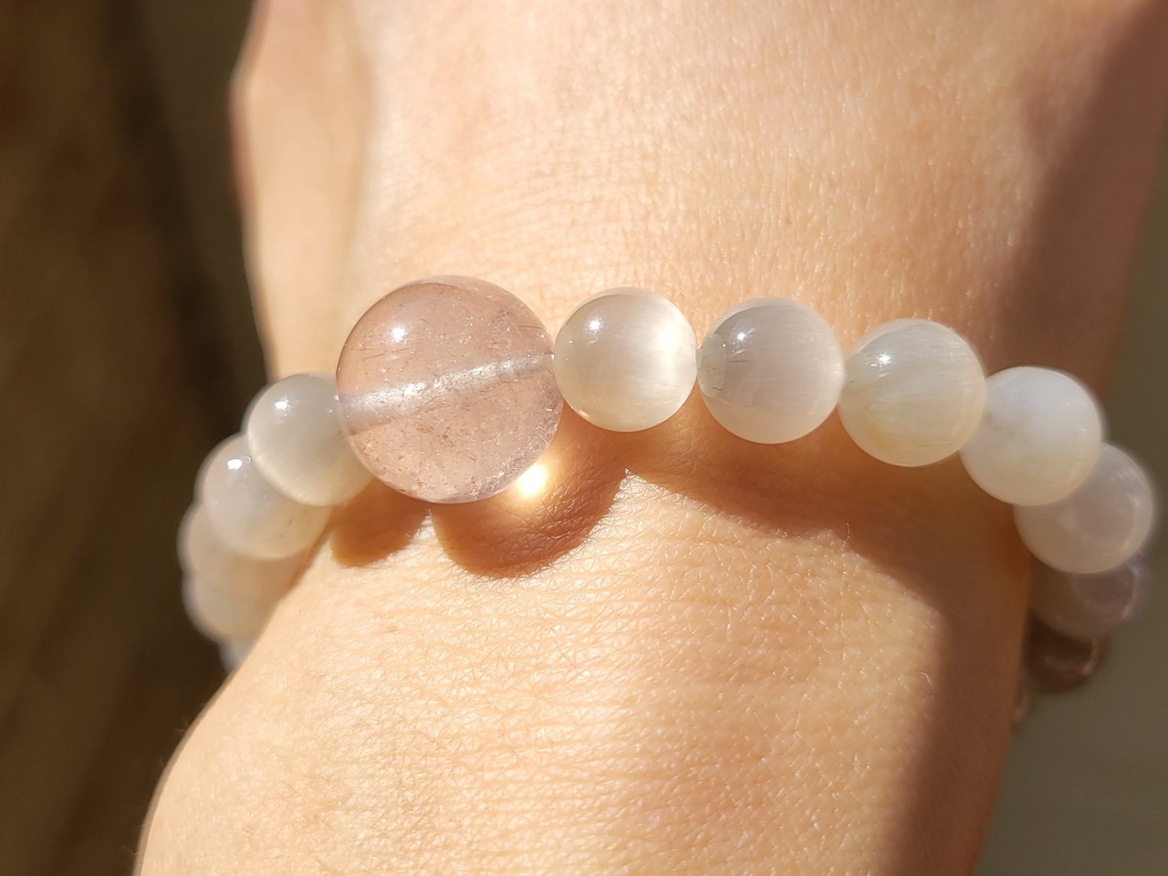 新作☆ピンク&ホワイトキャッツサゲニティックブレスレット