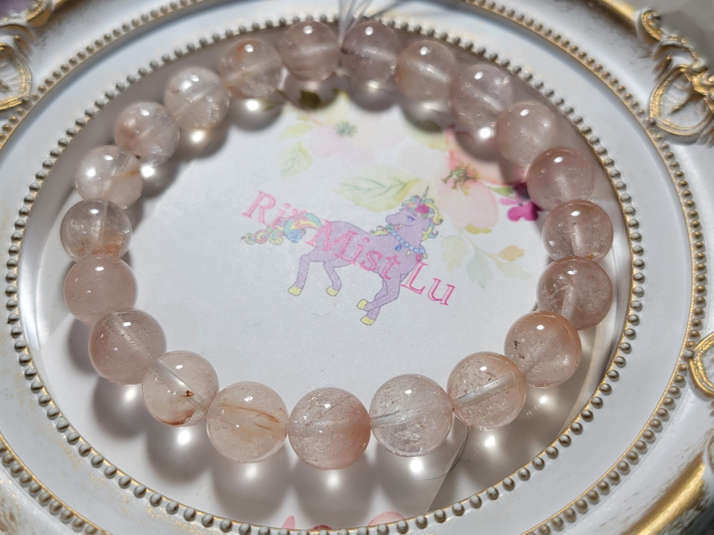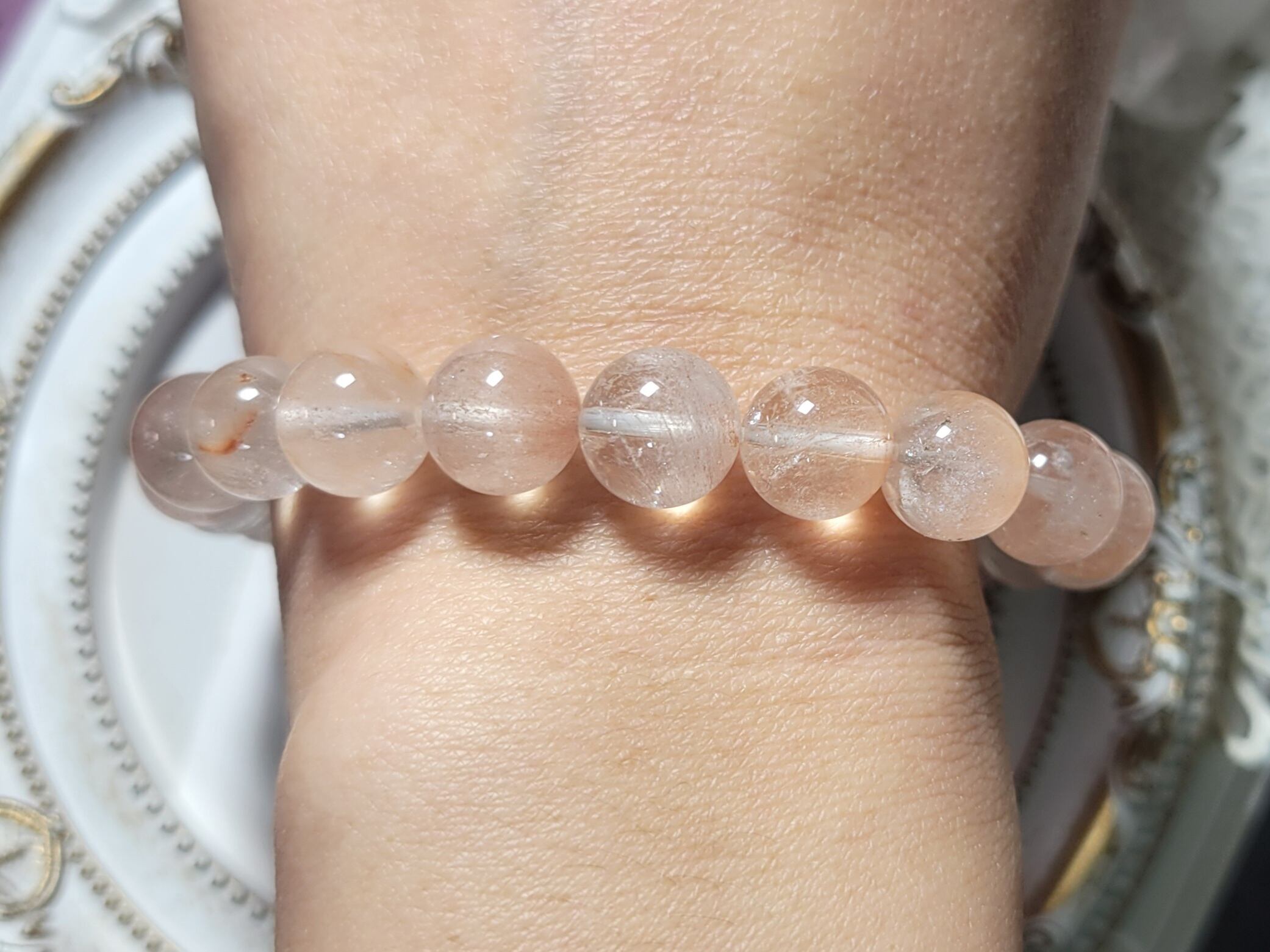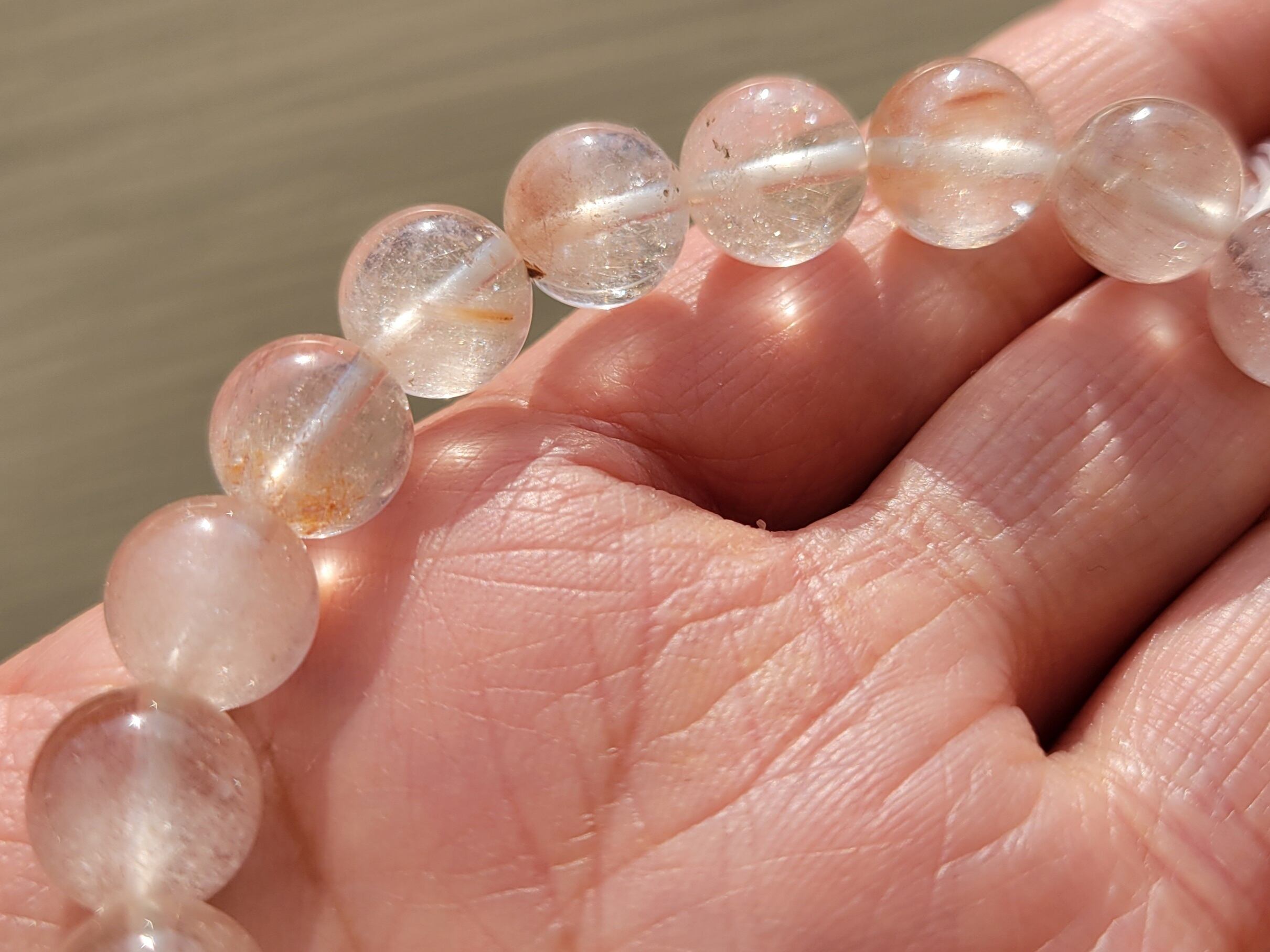 今までの高品質タイプからは透明度、色具合などは劣りますが、高品質なピンクサゲニティックはオールで持つには到底手が出なかった方におすすめのお手頃価格のオールブレスレットです!