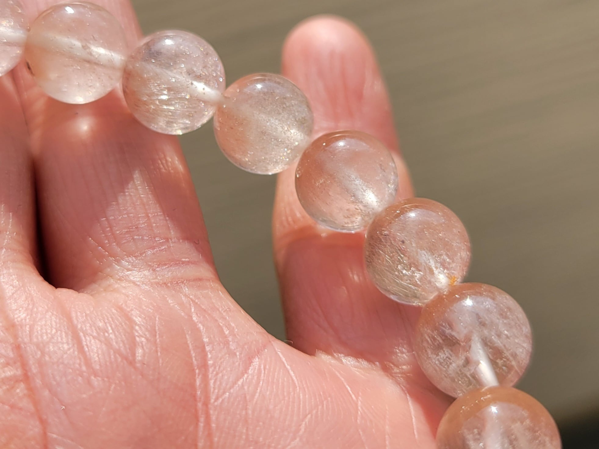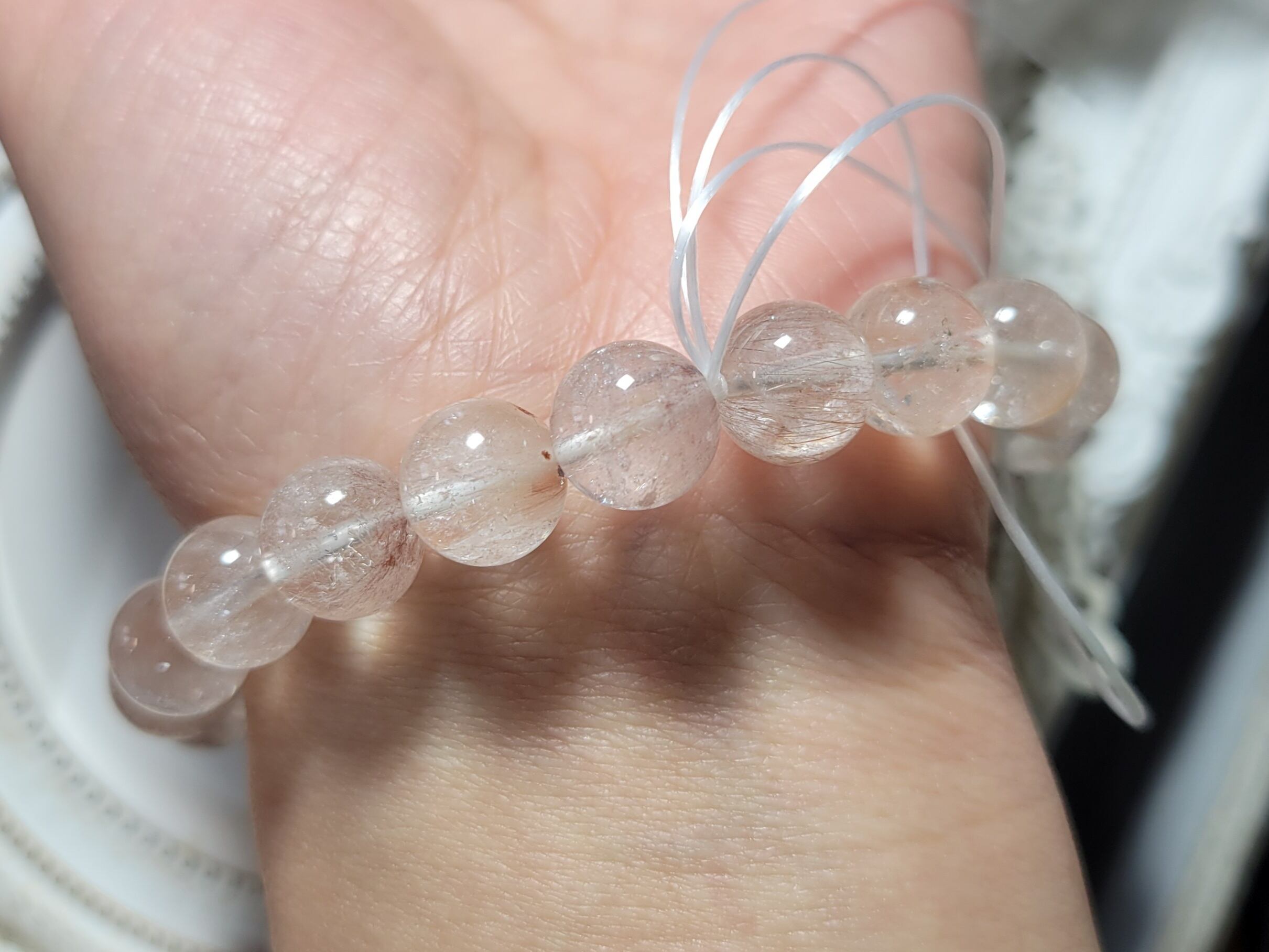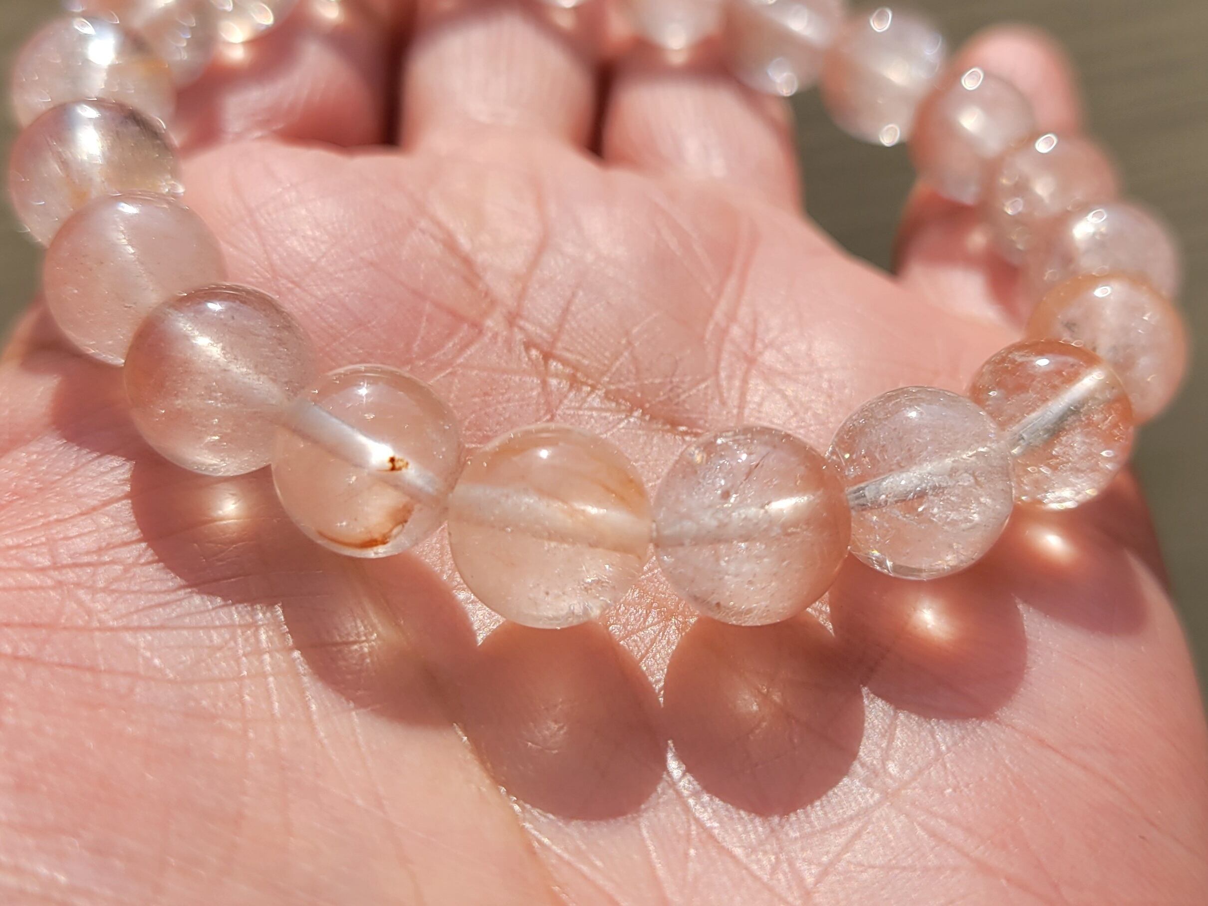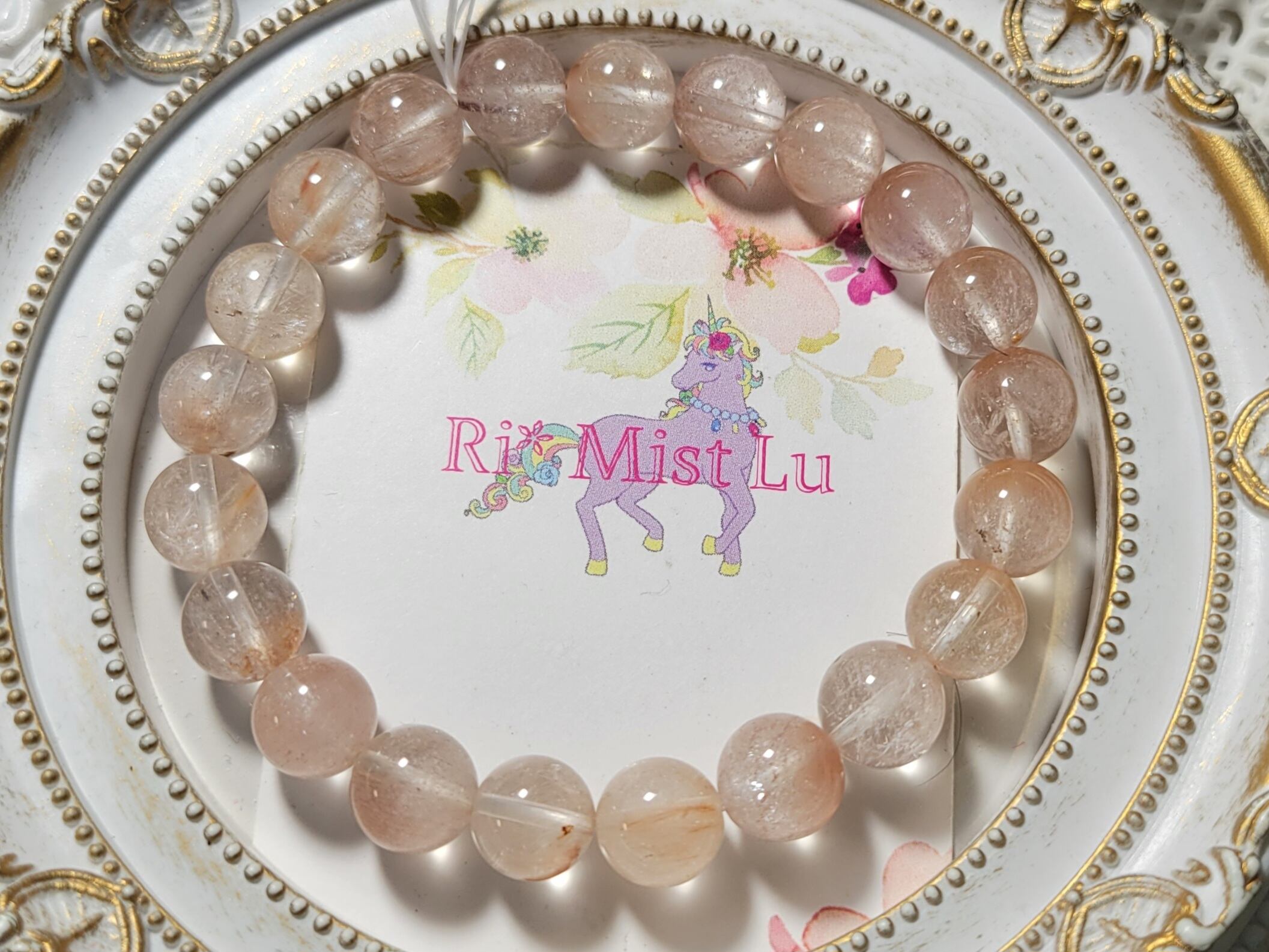 今までの高品質タイプからは透明度、色具合などは劣りますが、高品質なピンクサゲニティックはオールで持つには到底手が出なかった方におすすめのお手頃価格のオールブレスレットです!