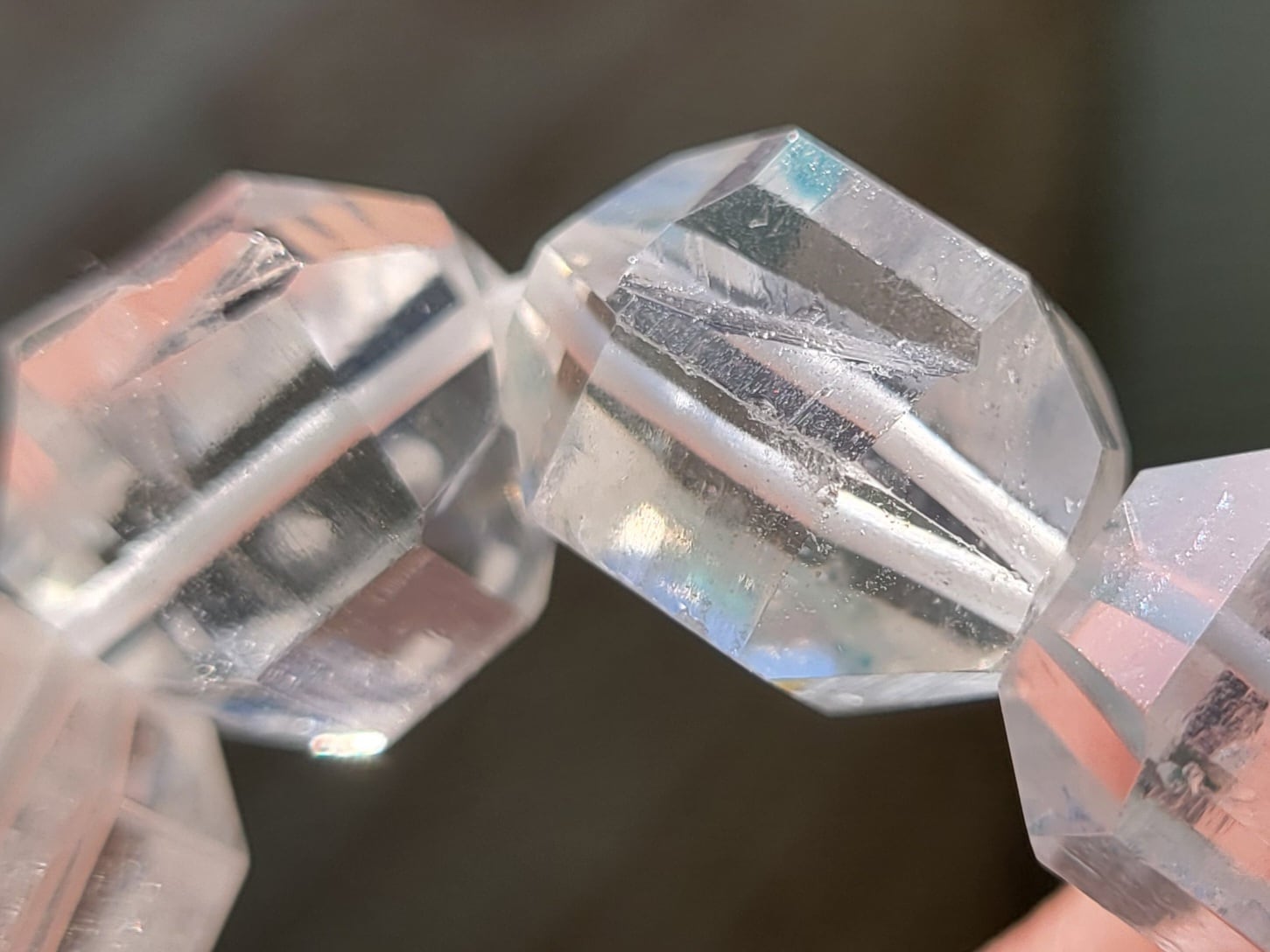 欠けがあるように見える箇所も水晶の成長の証のバーコードが刻まれており、欠けではなく天然だとわかります。