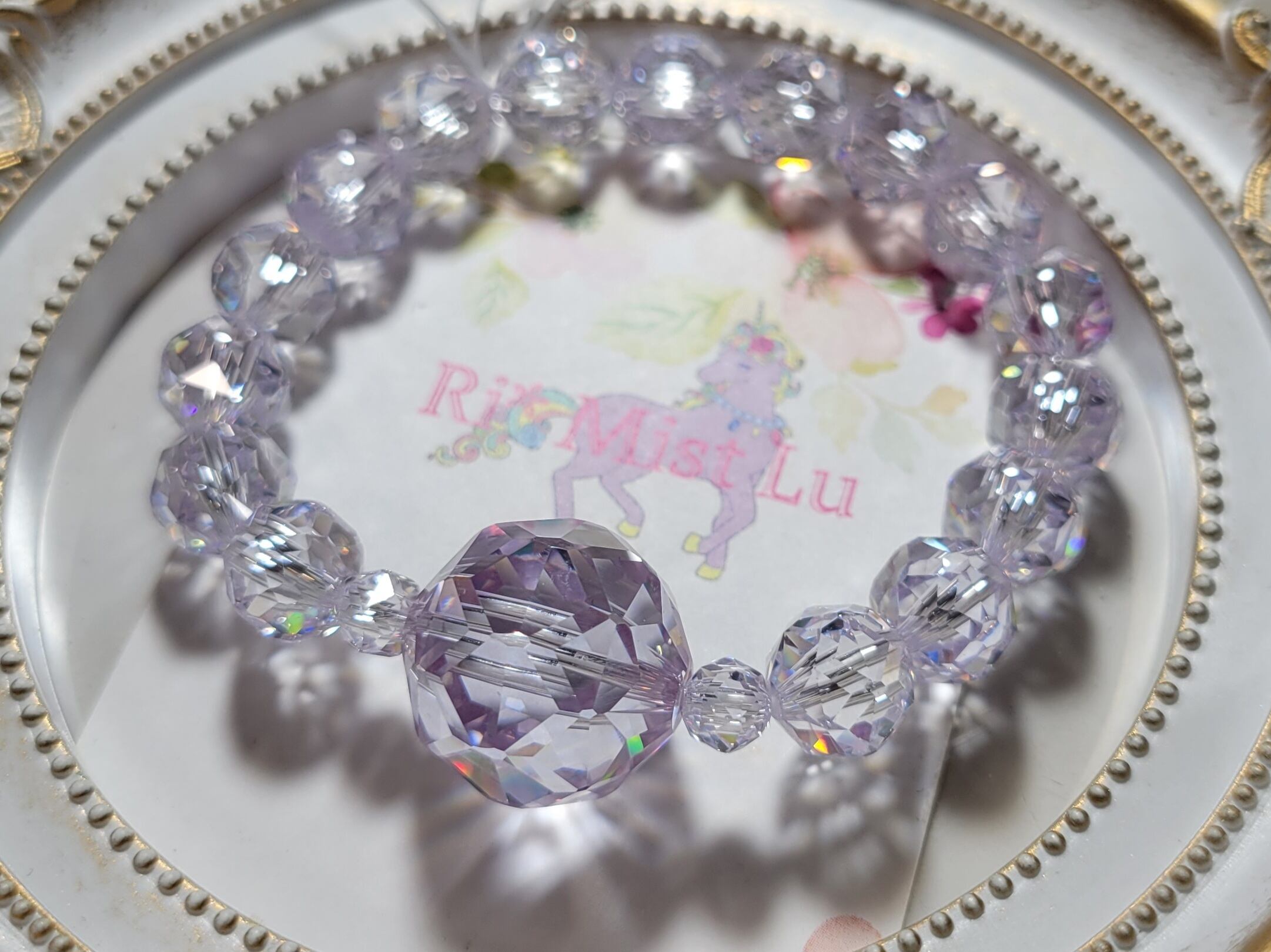 お店って商品が映えるライティングになっているから、ブレスレットが綺麗に見えるし、カットのものはキラッキラになるんですよね。