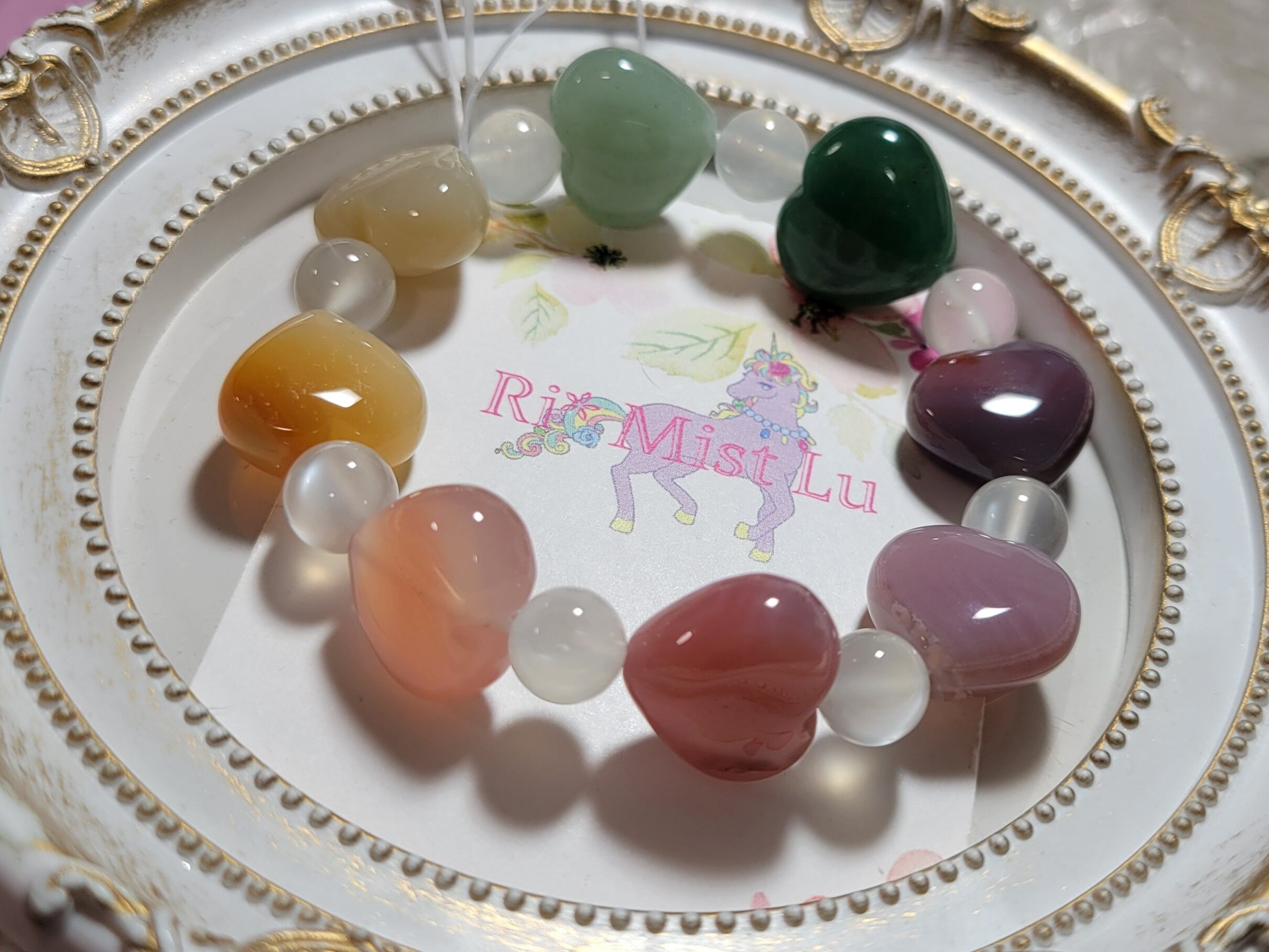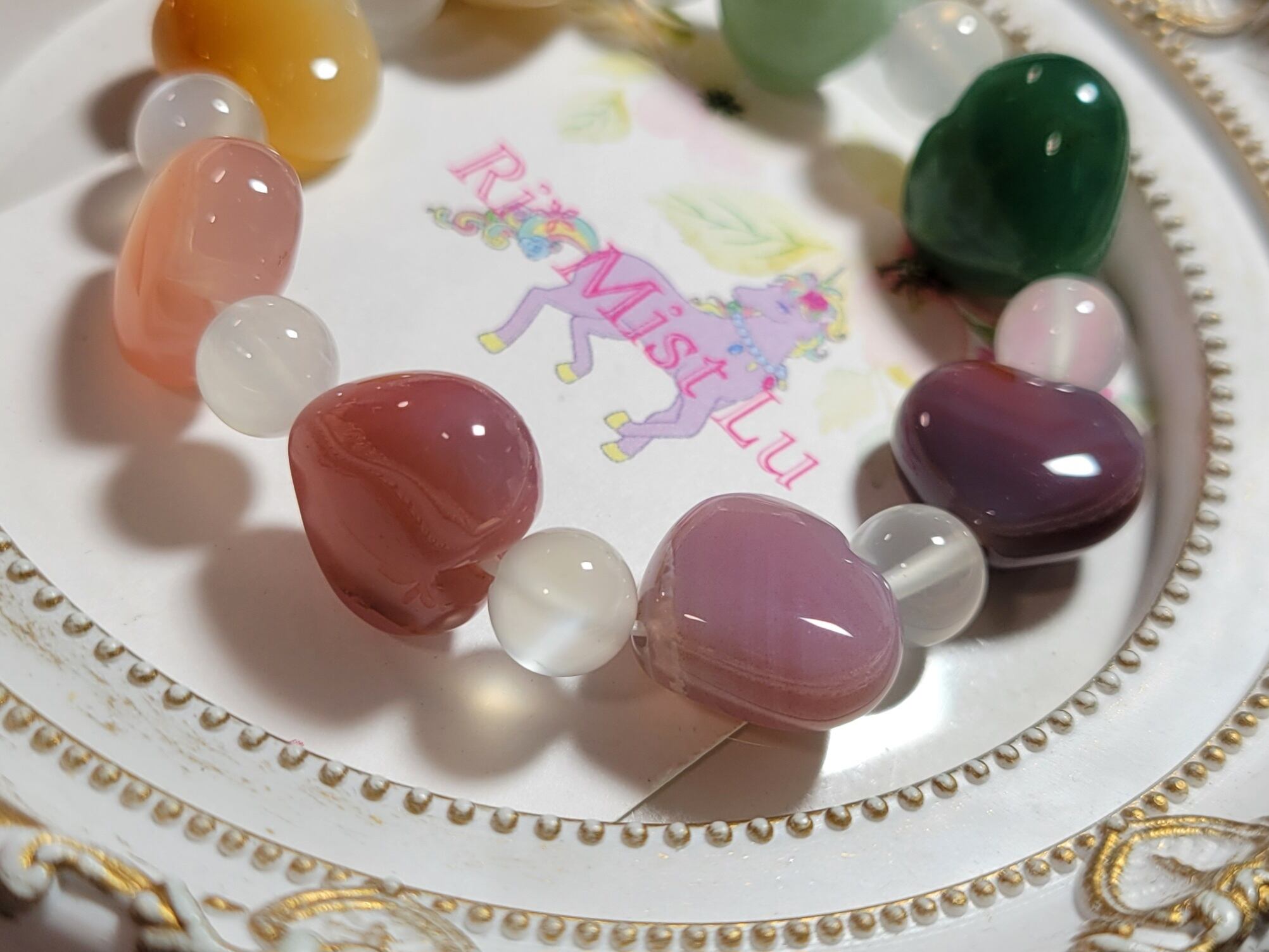 キャンディ瑪瑙のハート×ホワイトムーンストーンのカラフルハートブレスレット✨