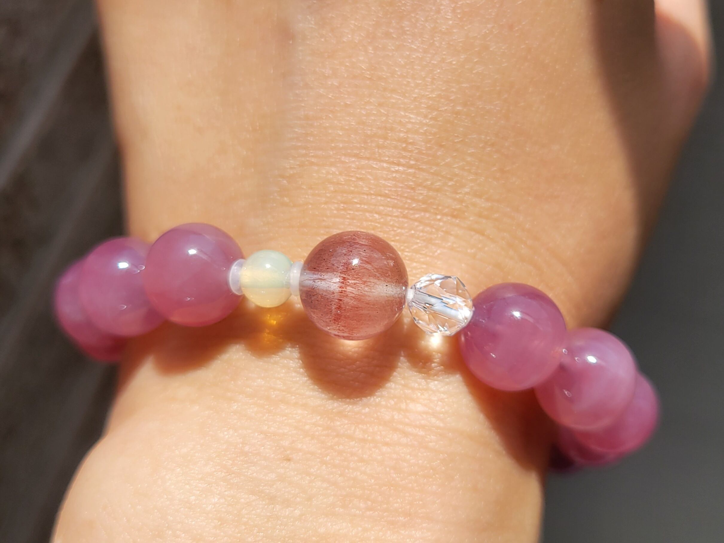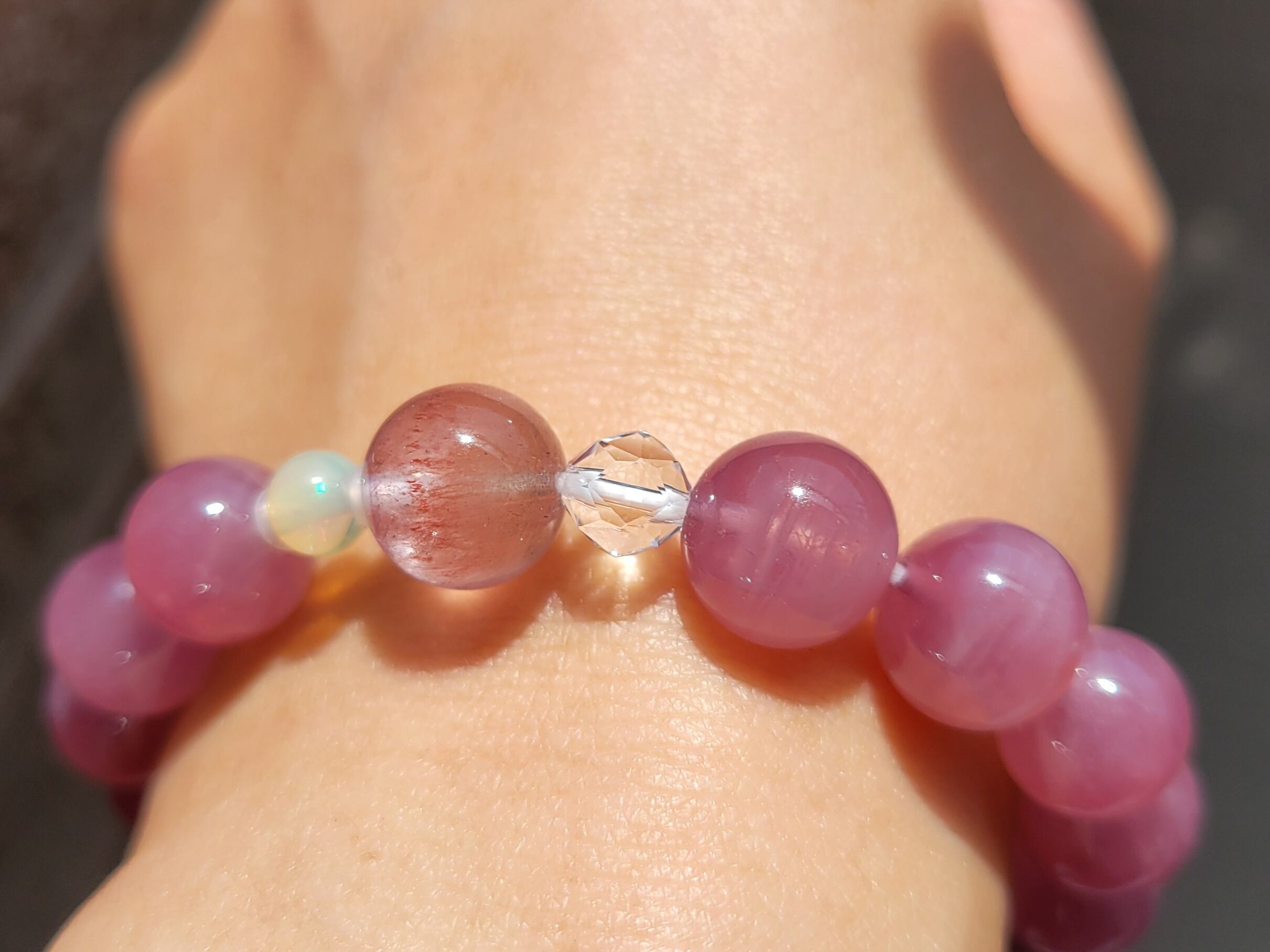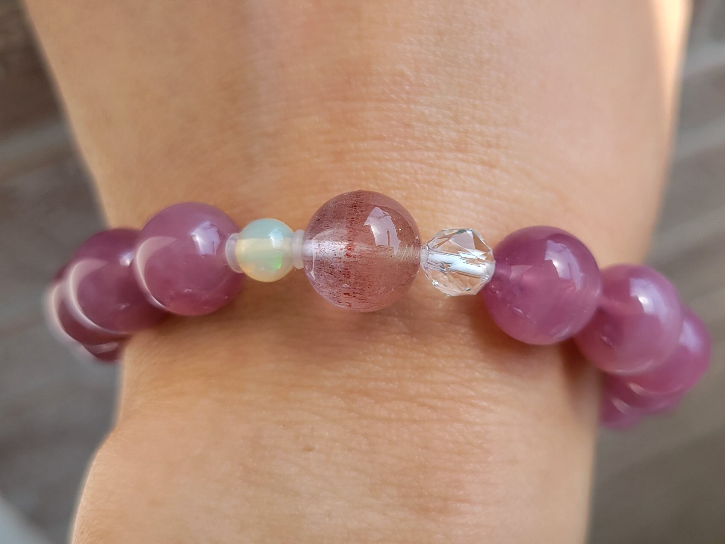 新作☆ストロベリーローズ、プレシャスオパールのディープローズクォーツブレスレット