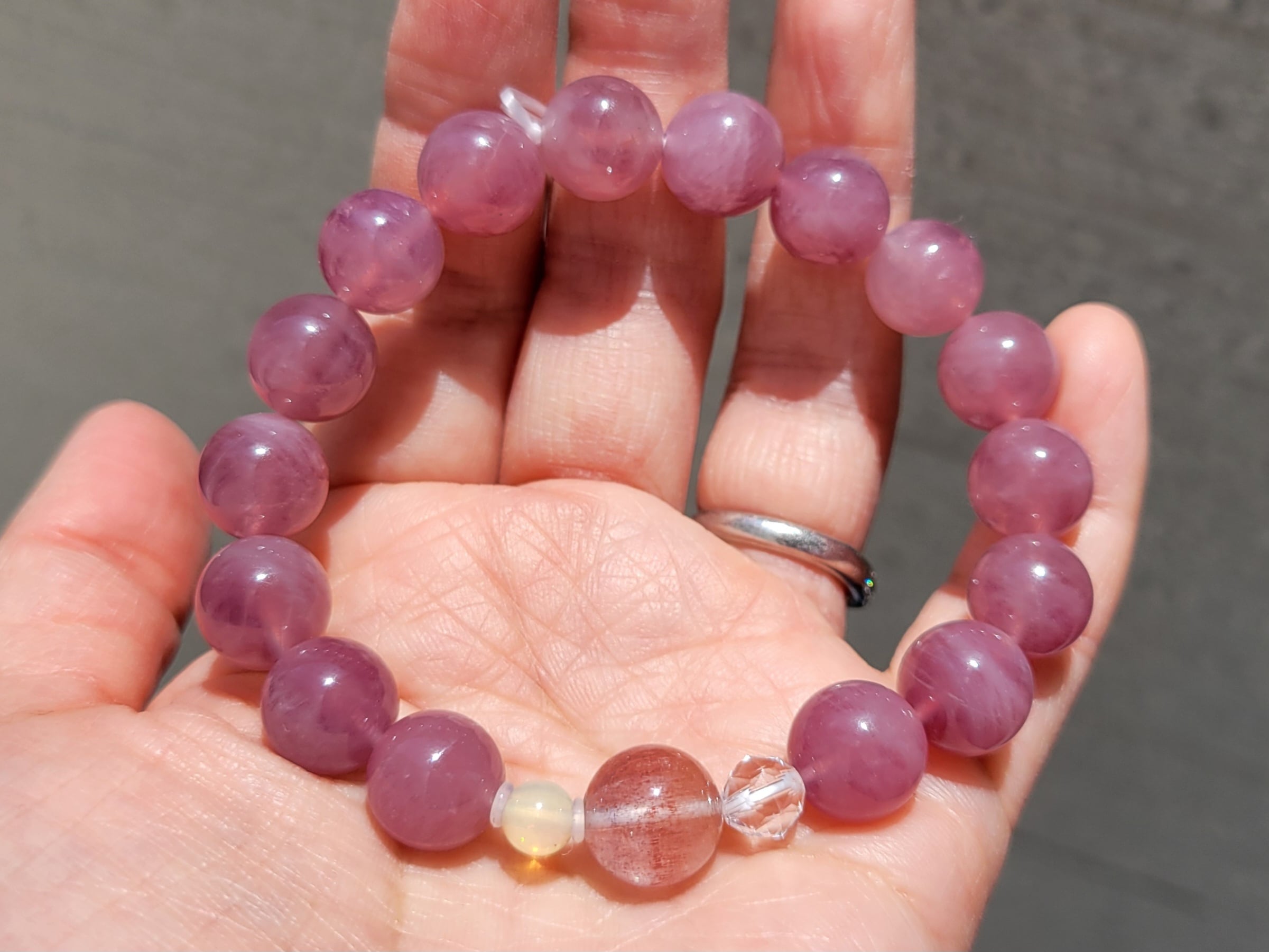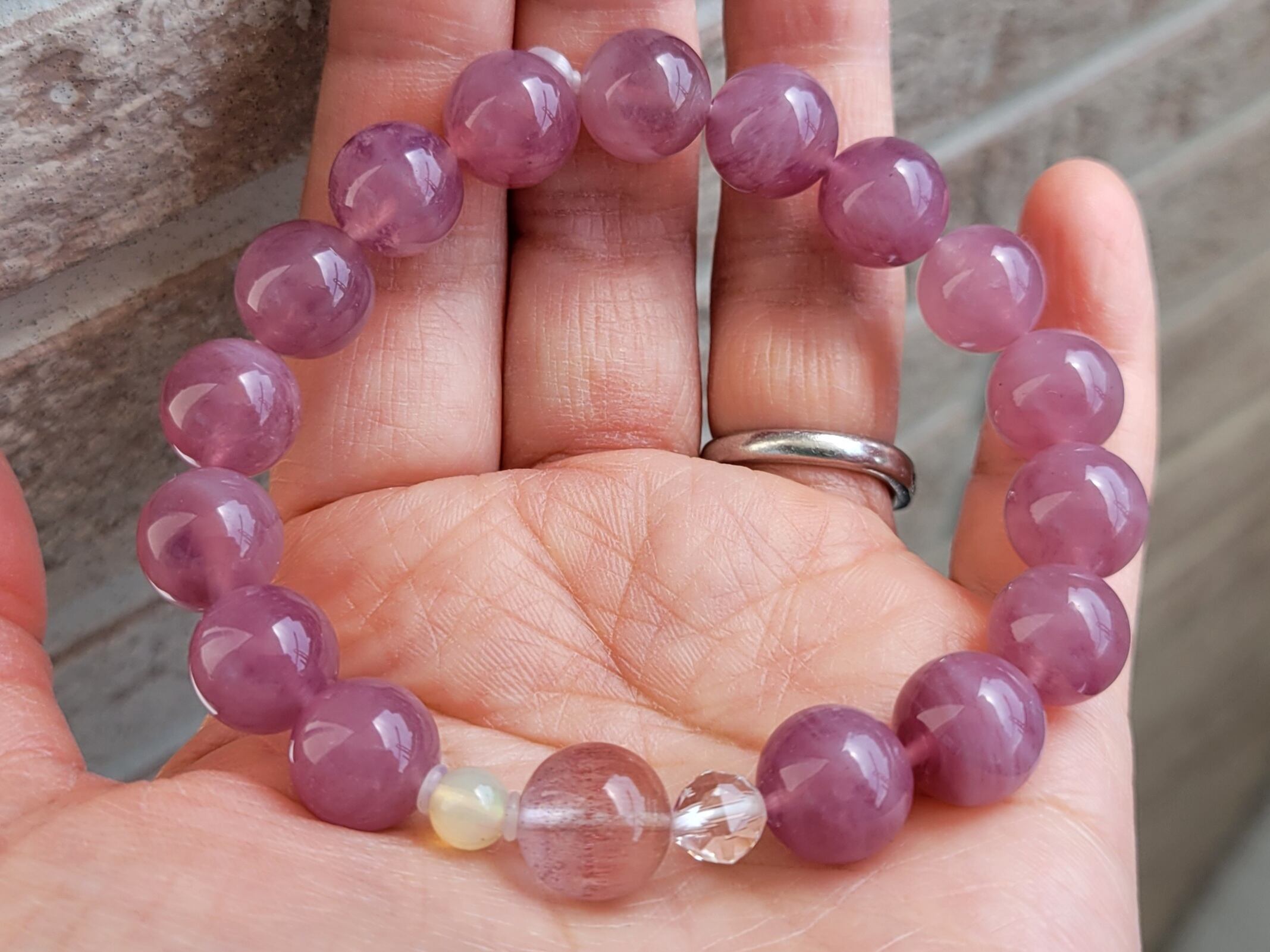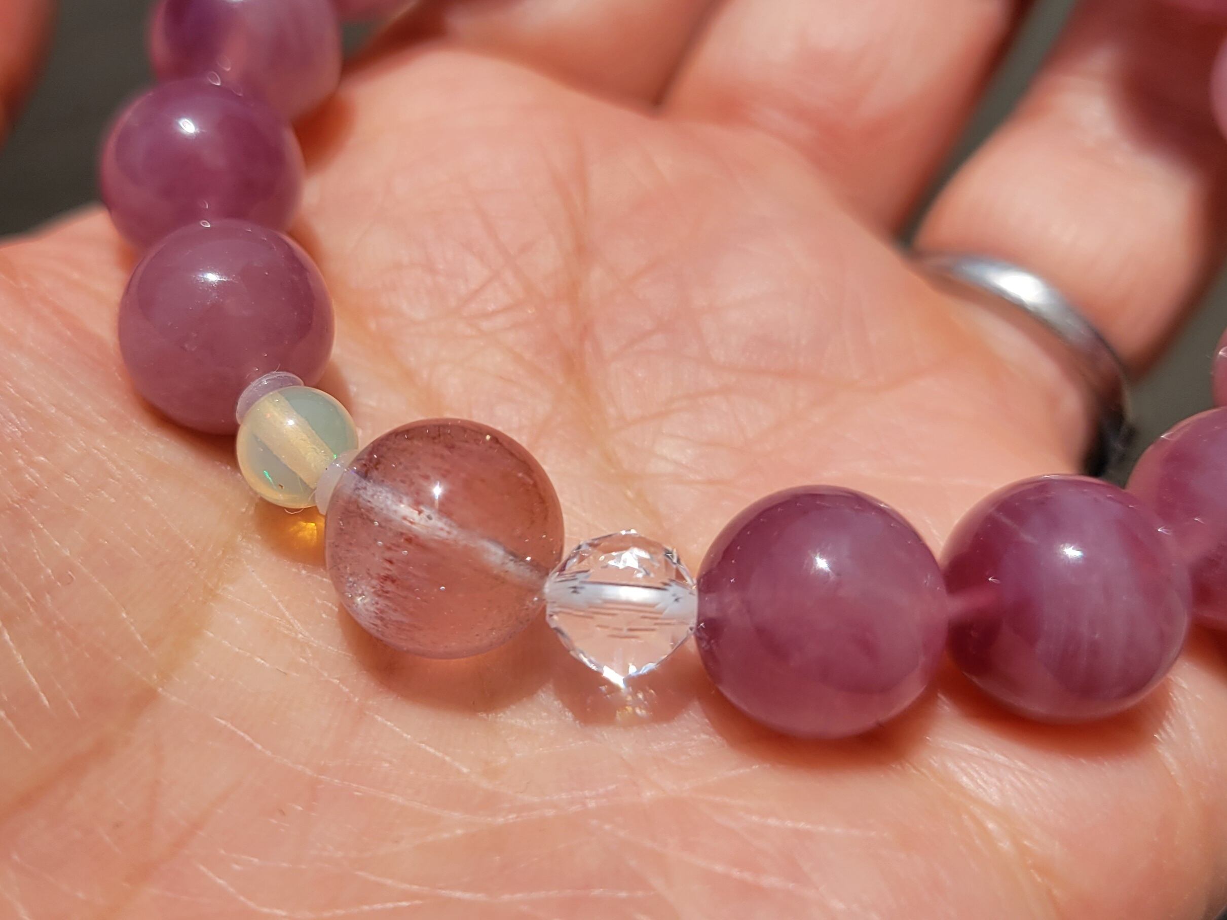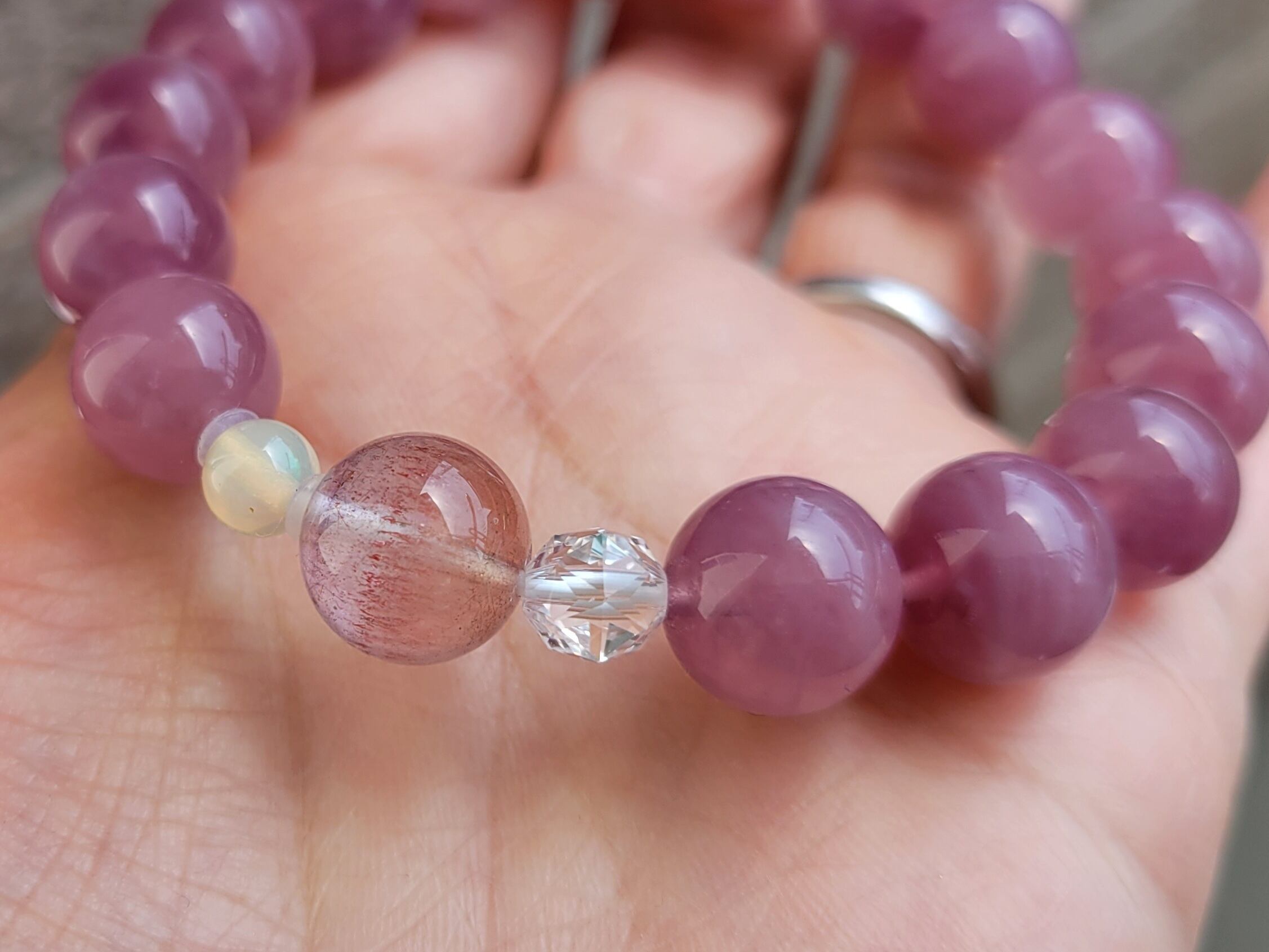 新作☆ストロベリーローズ、プレシャスオパールのディープローズクォーツブレスレット