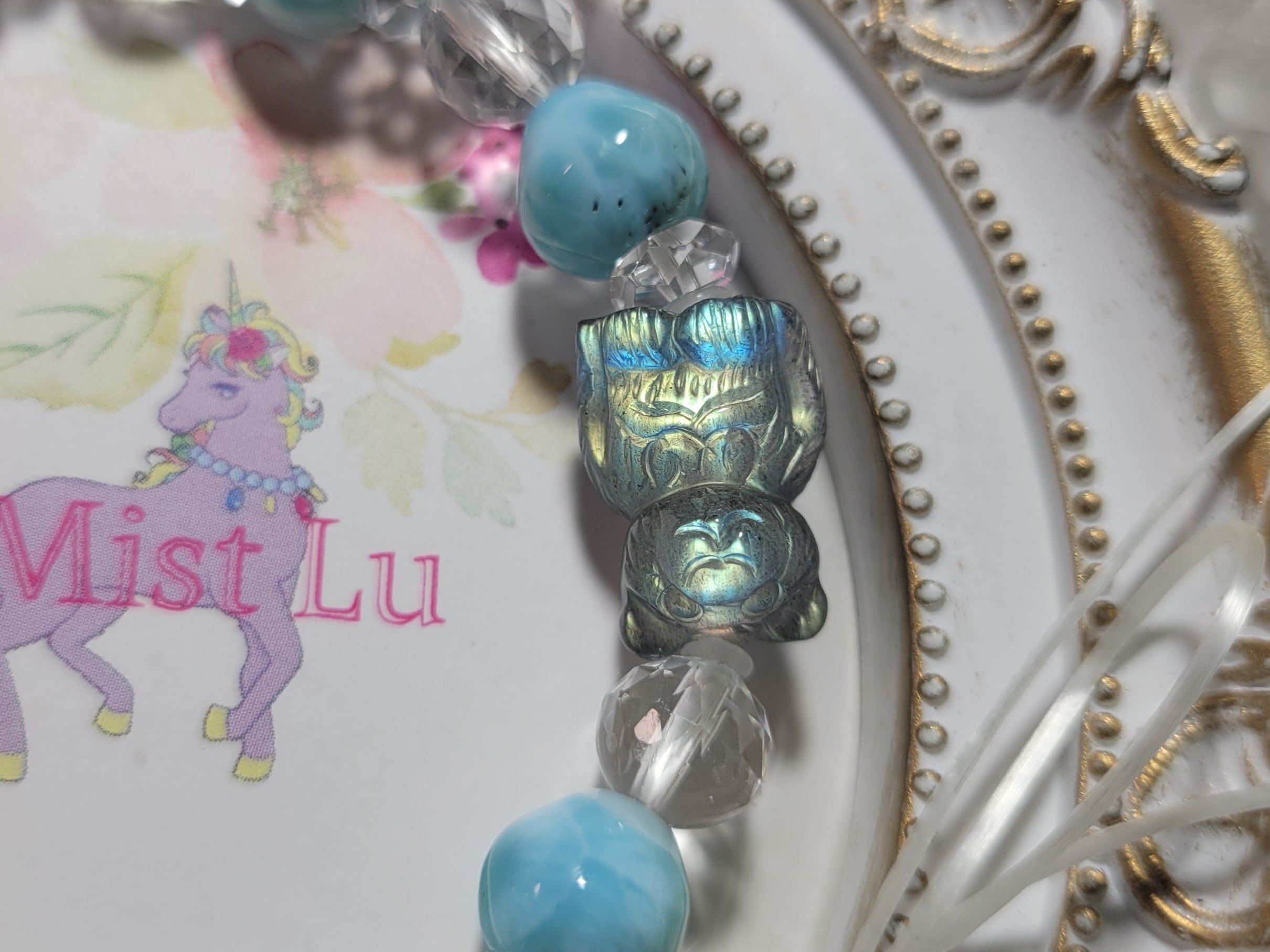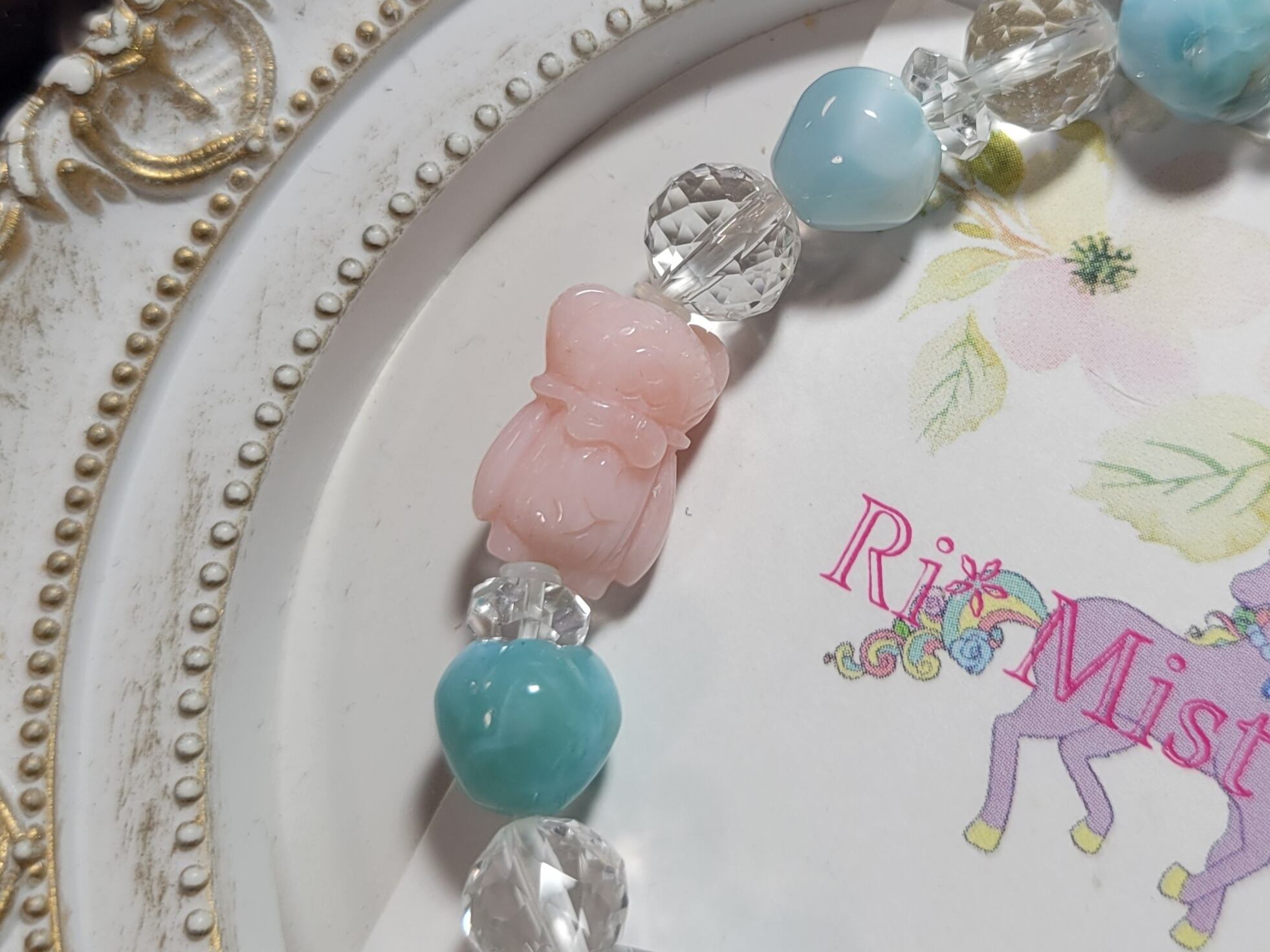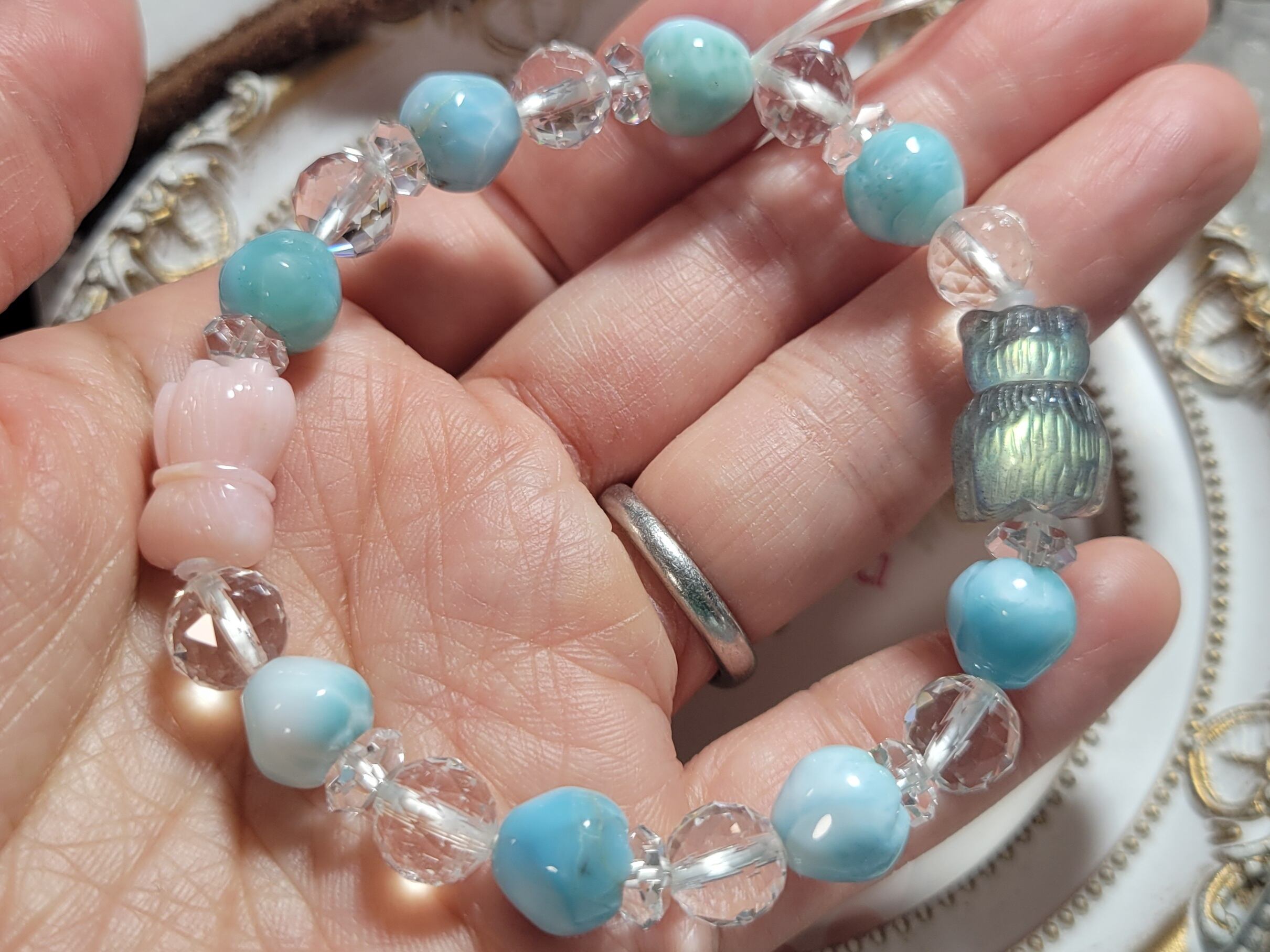 新作☆ピンクオパールとラブラドライトのダブルリミクマちゃん両A面ブレスレット