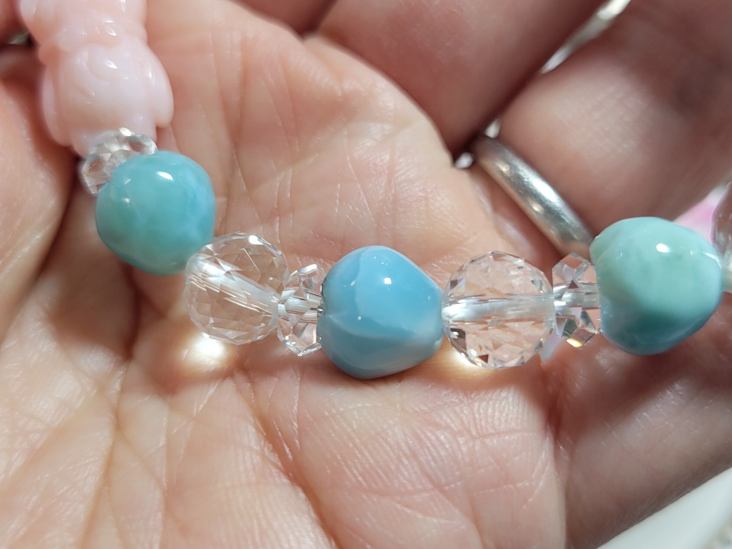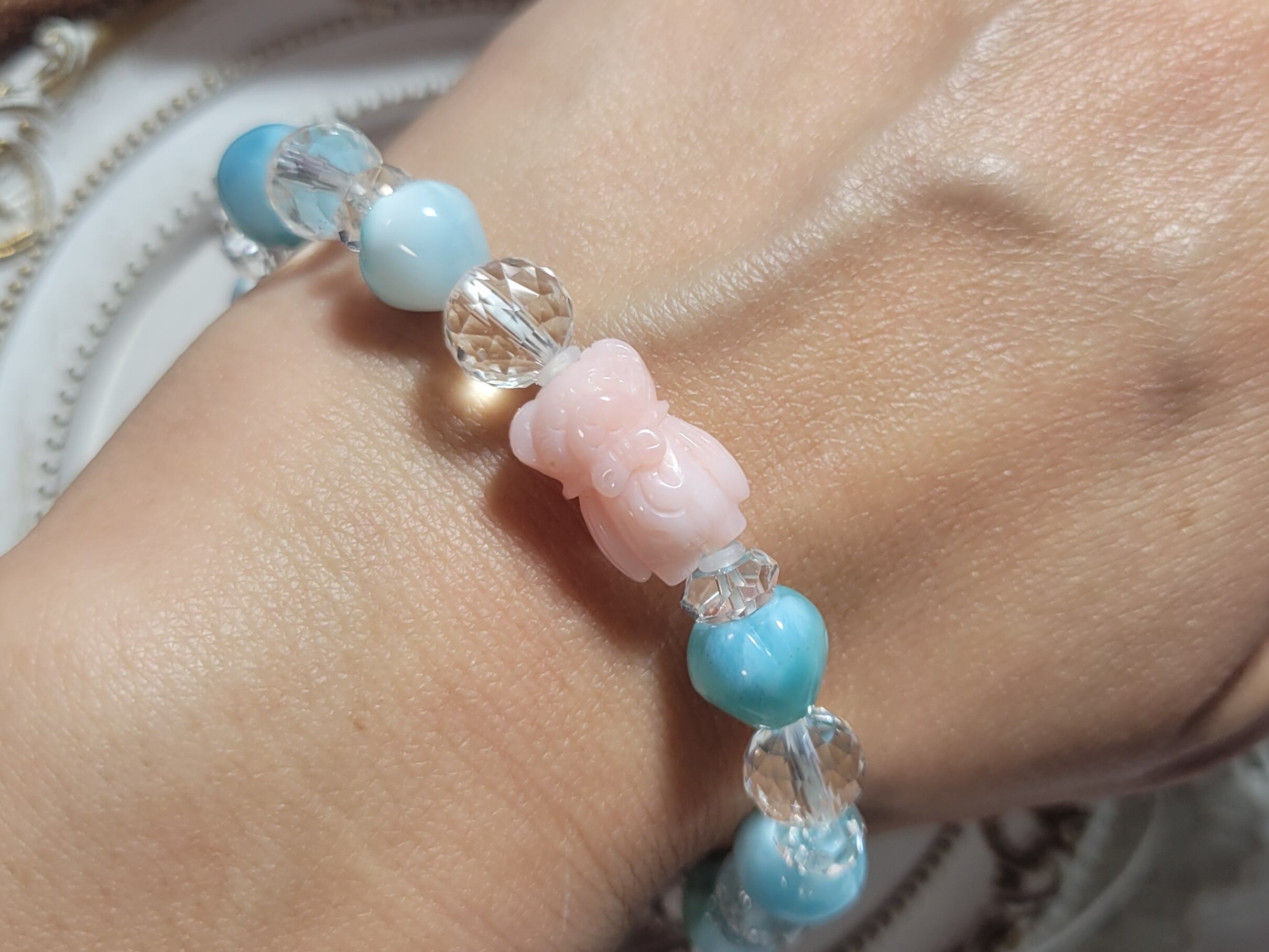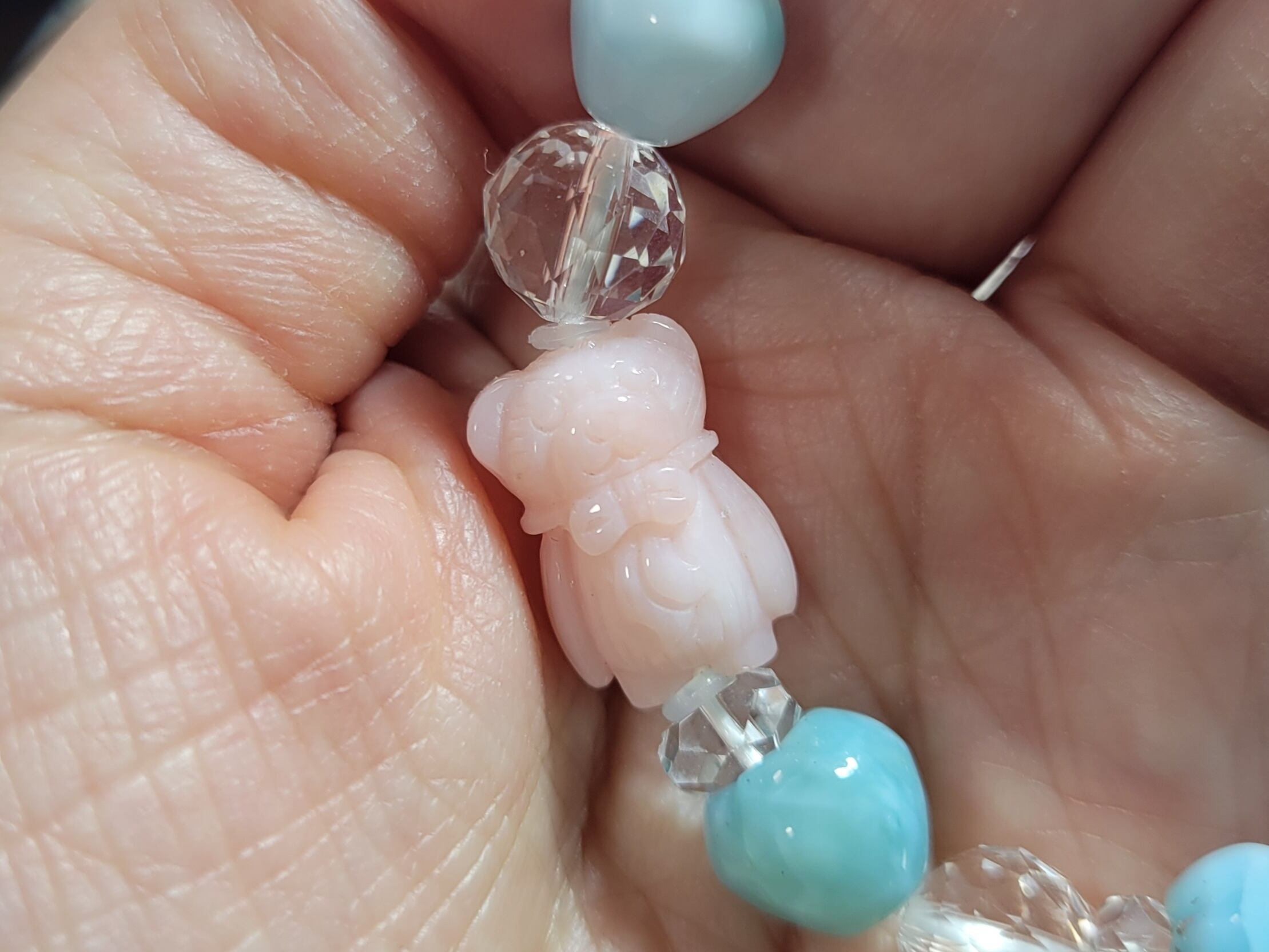 新作☆ピンクオパールとラブラドライトのダブルリミクマちゃん両A面ブレスレット