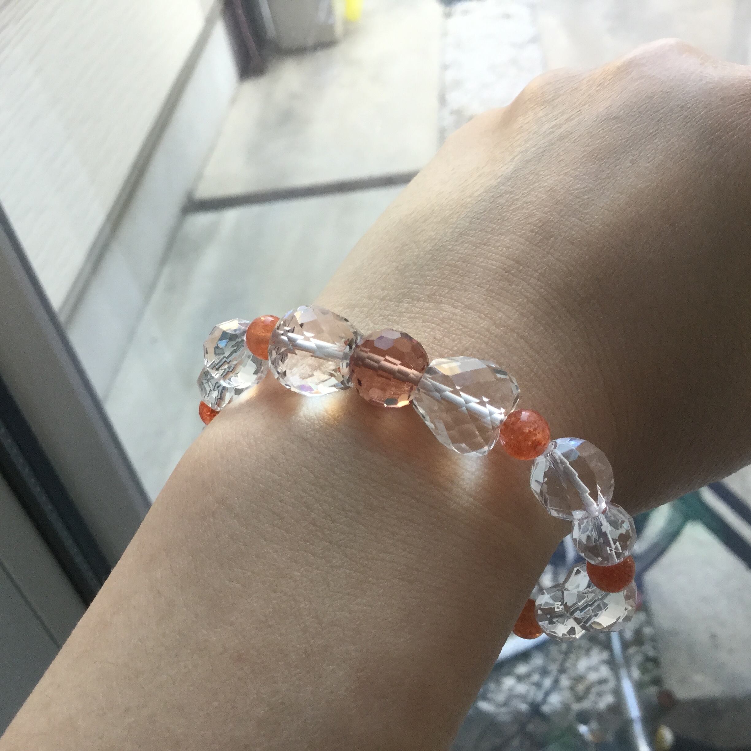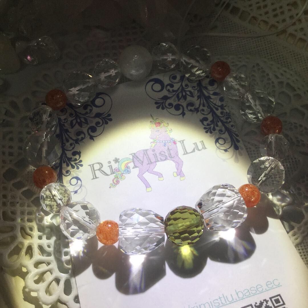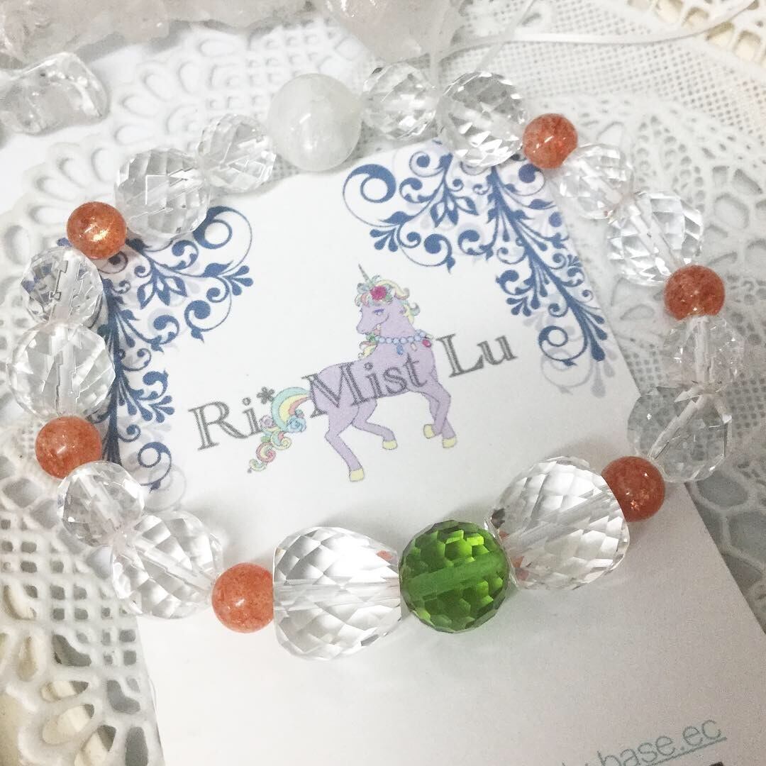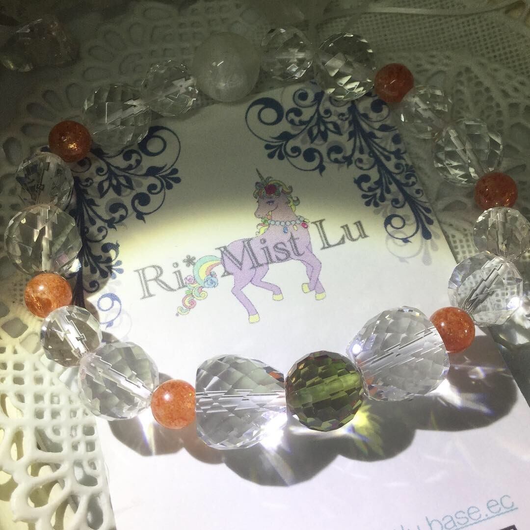 12ミリりんごカット水晶で挟んでリボンのようにしました。