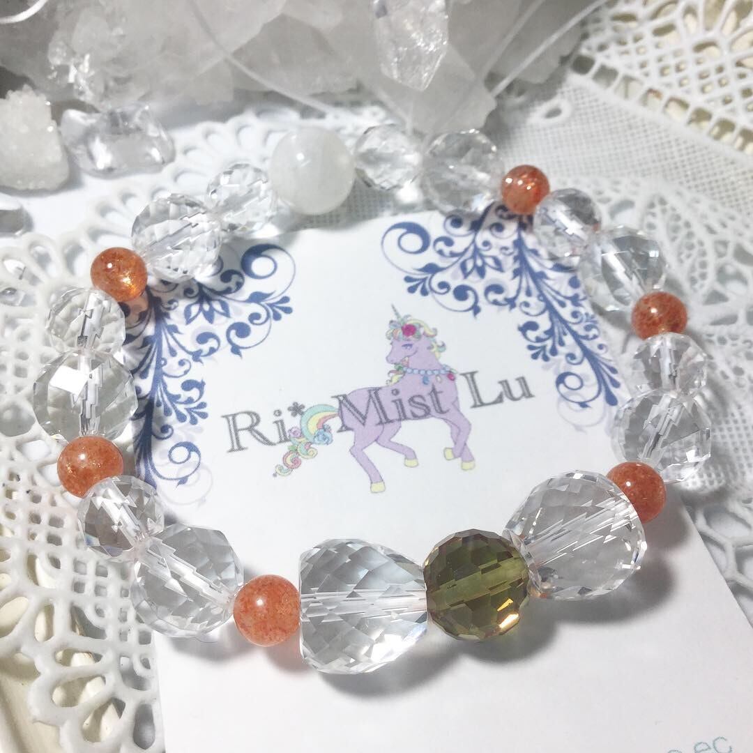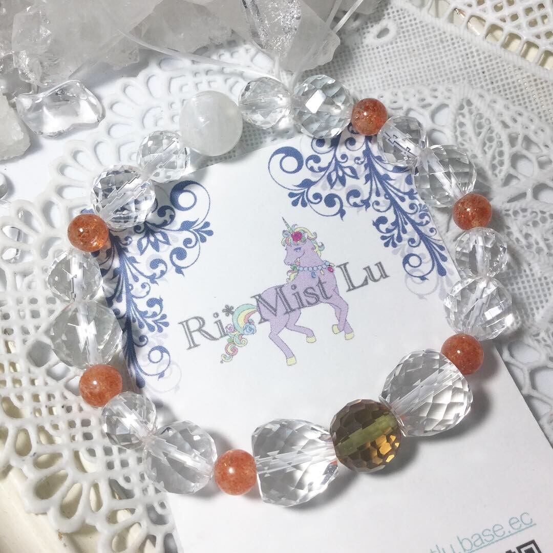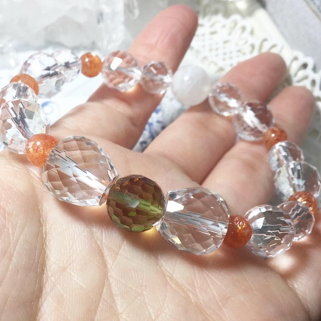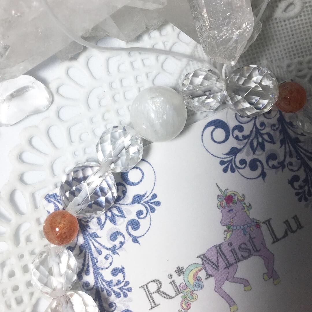カット水晶と、10ミリムーンストーンで組み合わせました。
