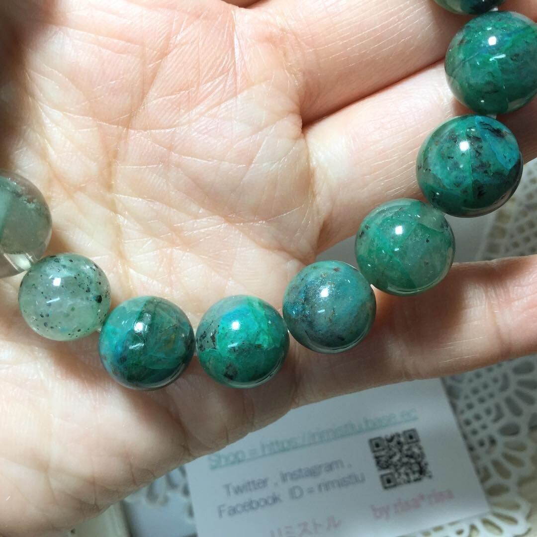 トップの脇にクリソコラインクォーツ 10ミリほど