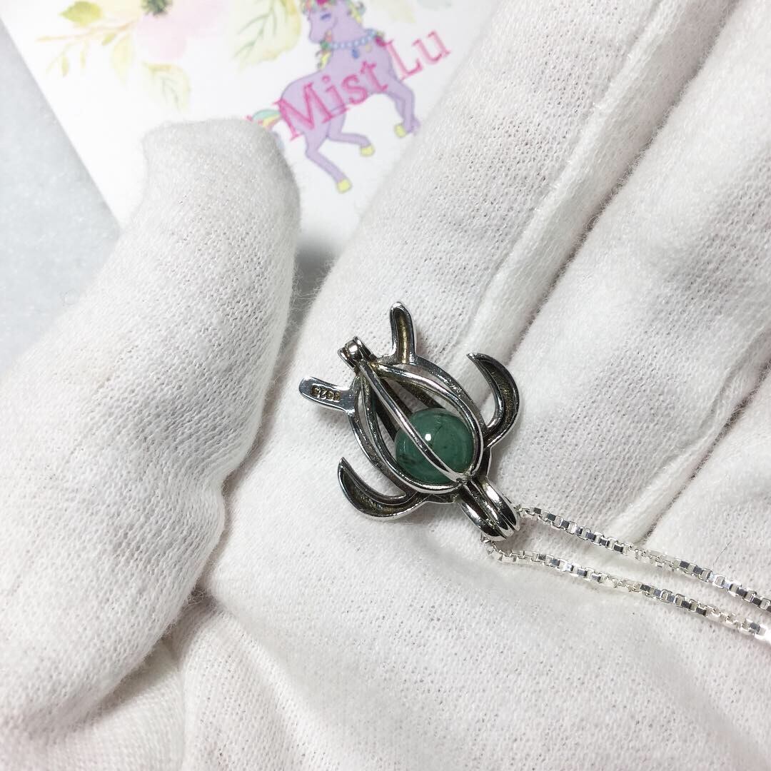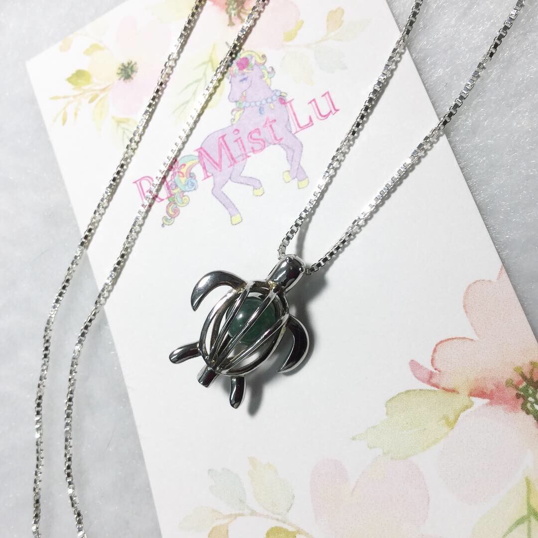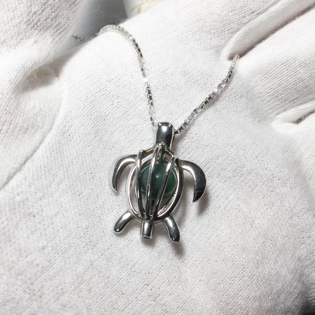 5月誕生石エメラルド入り!入れ替可能なシルバーペンダント亀さんチェーン付きネックレス