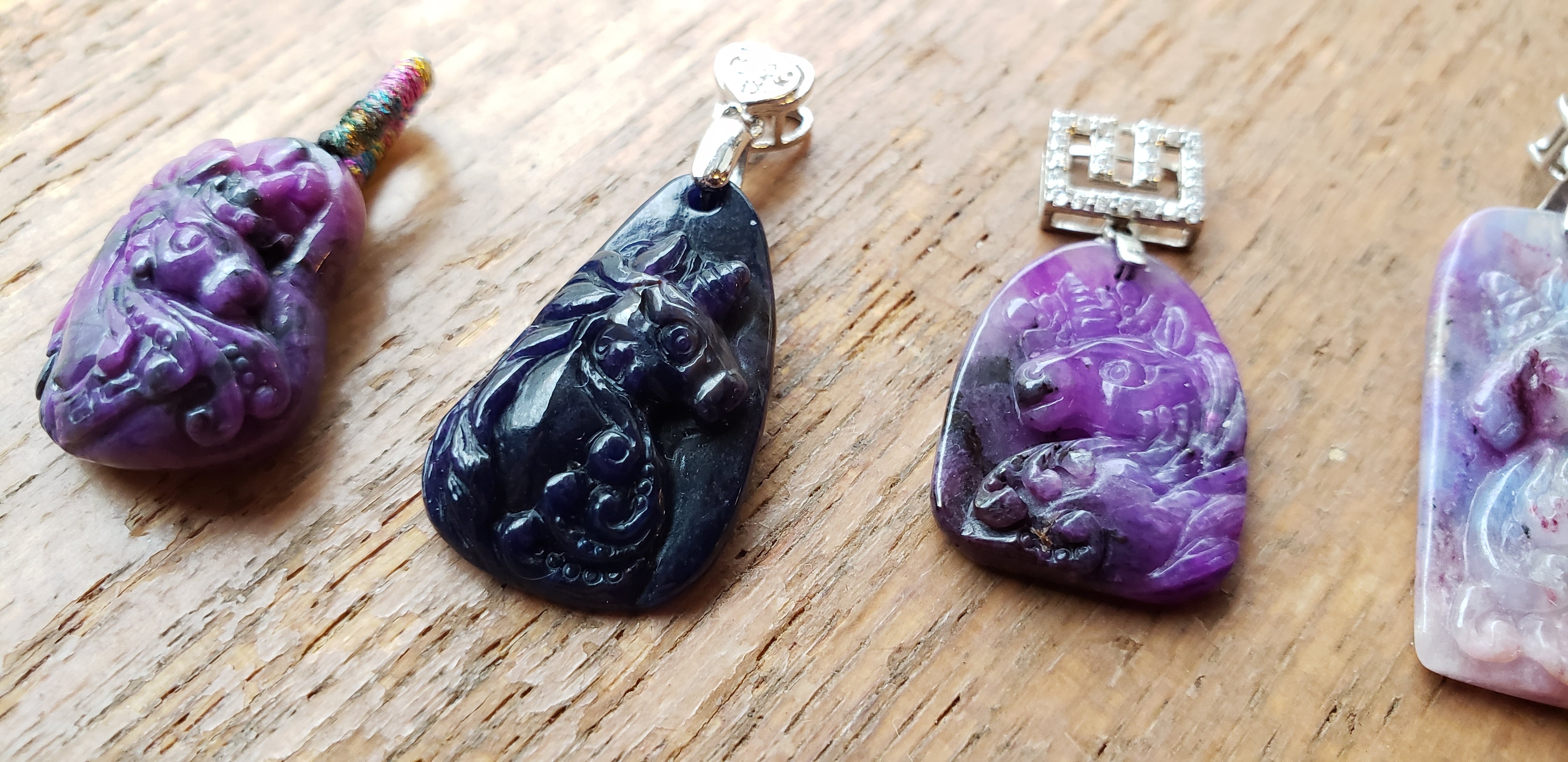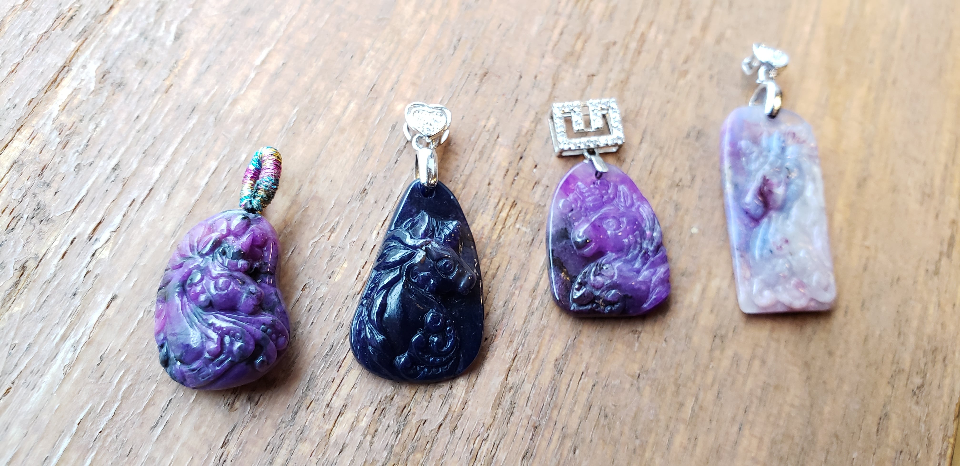 今となってはスギライト原石が高騰し、彫り物があまり作られなくなり、レアなお品となりました。