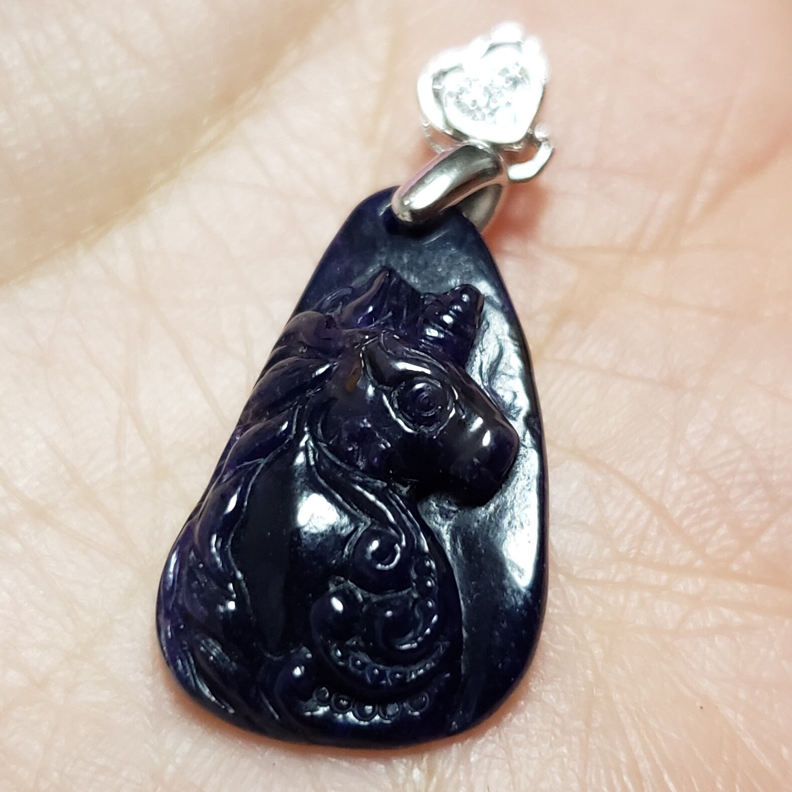 期間限定価格!①レア!ネイビーパープルスギライトのユニコーンペンダントトップ