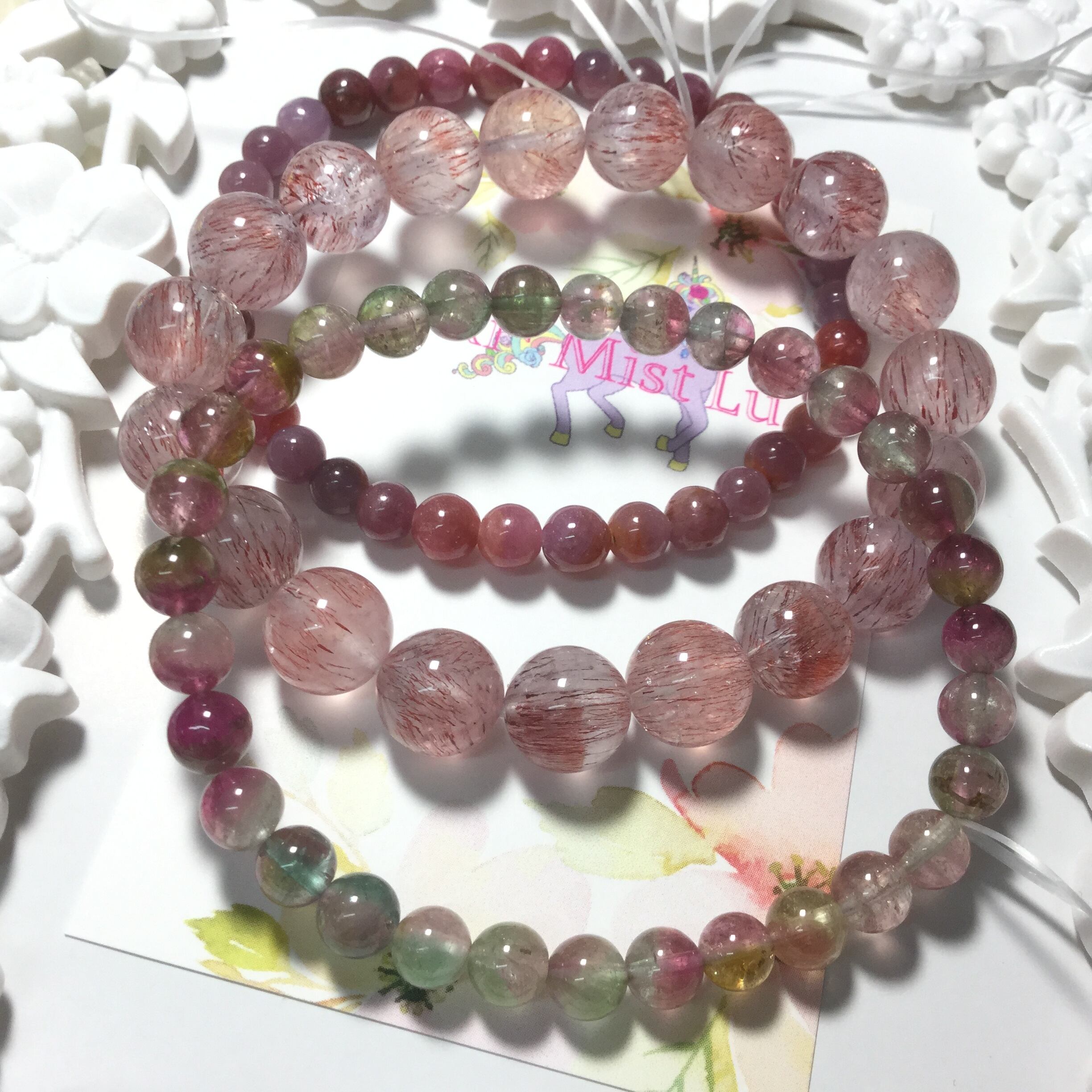 カラフルかわいいウォーターメロントルマリン6.ミリオールブレスレット