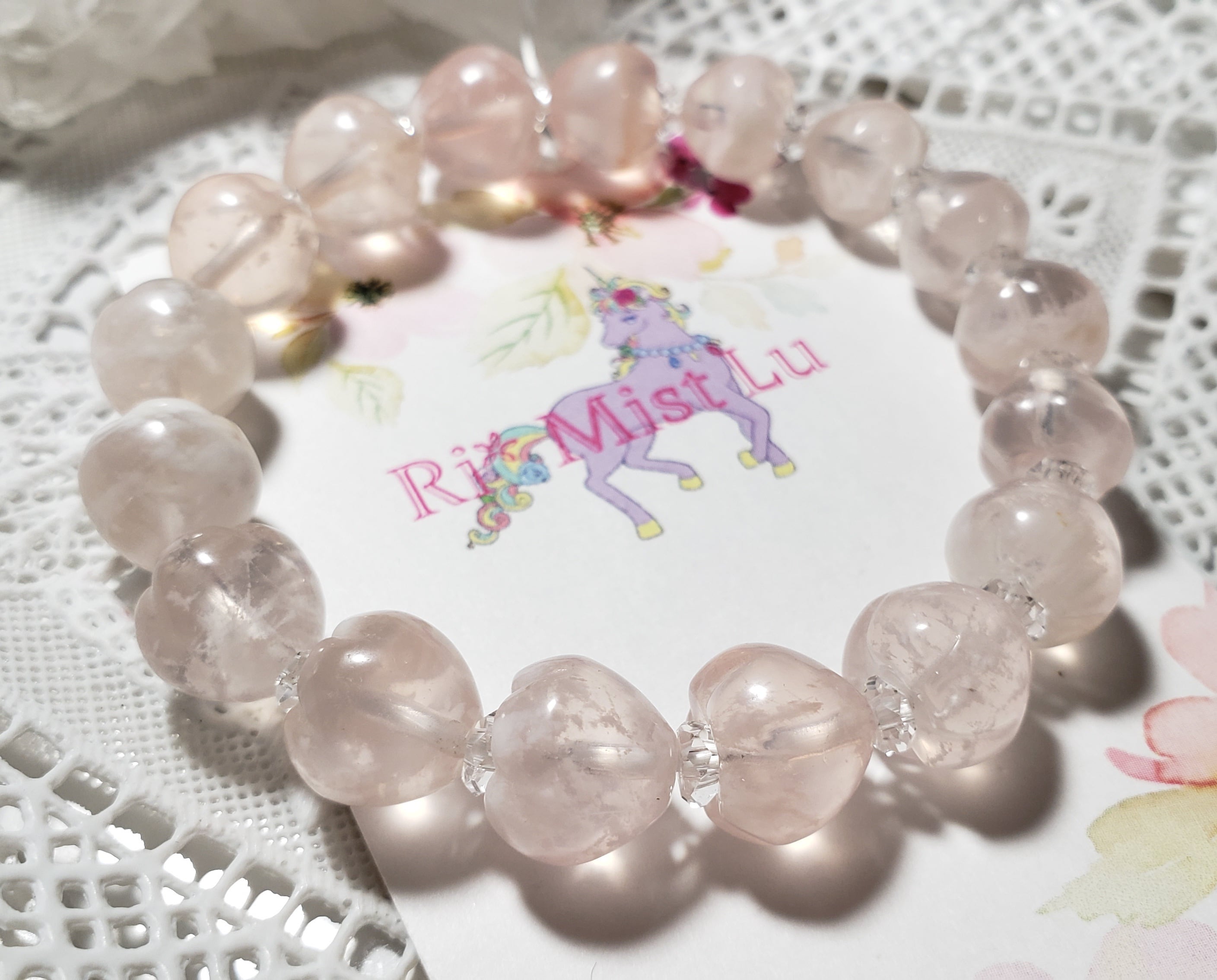 こちらはかわいいピンクセリサイトいちご型ブレス