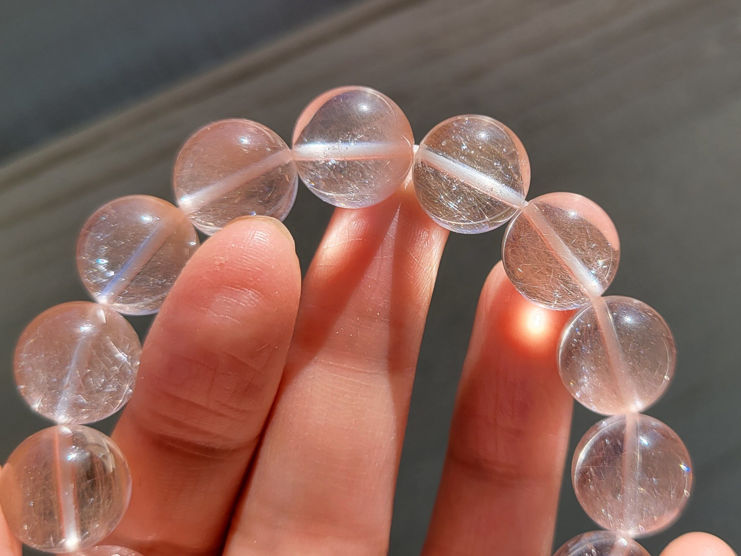 13ミリの優しいピンクサゲニティックブレスレット。