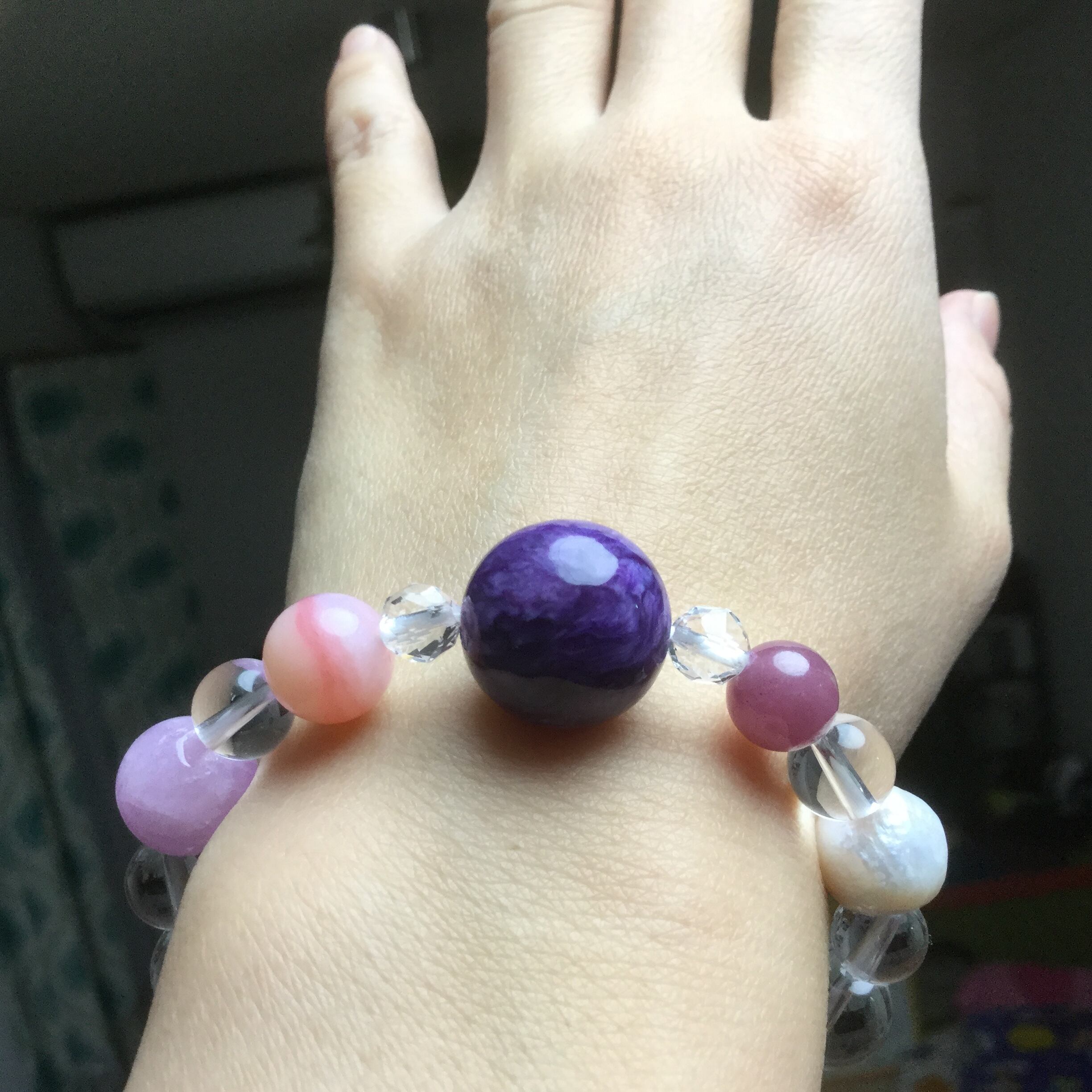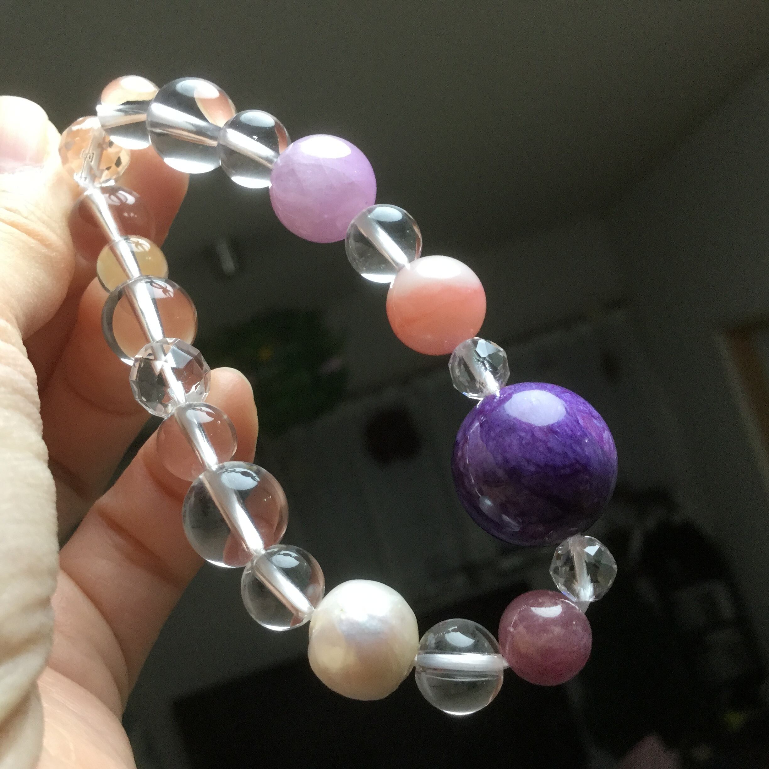 腕サイズによりボタンカット水晶が混じったり