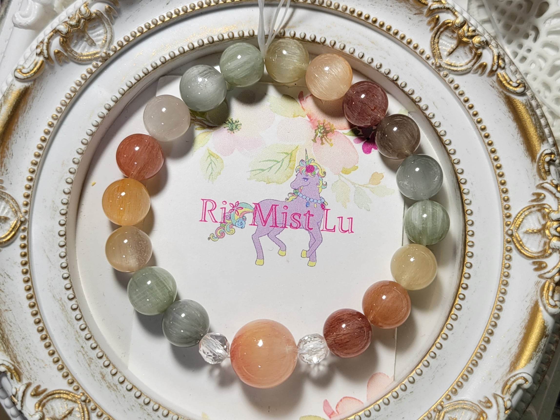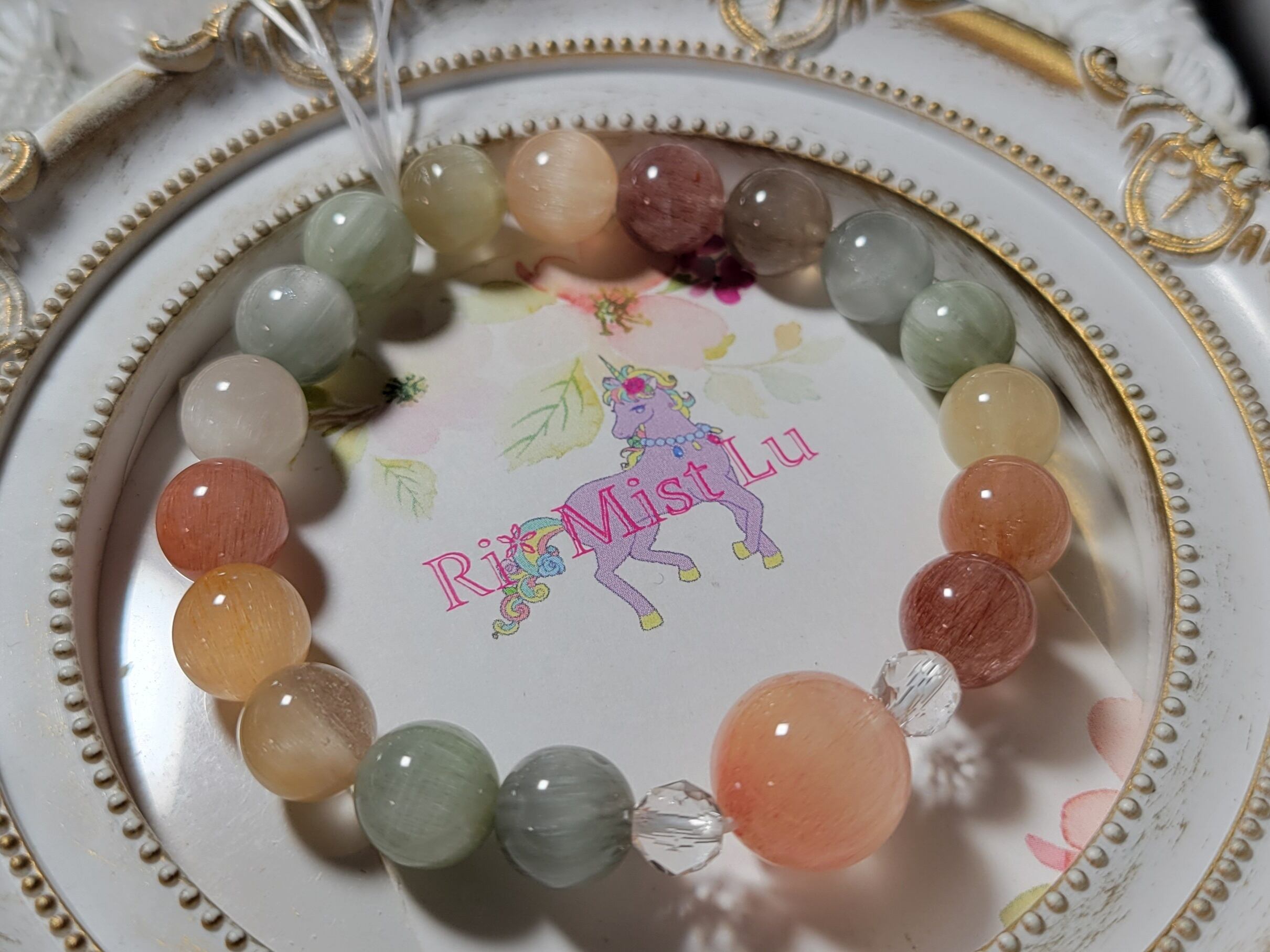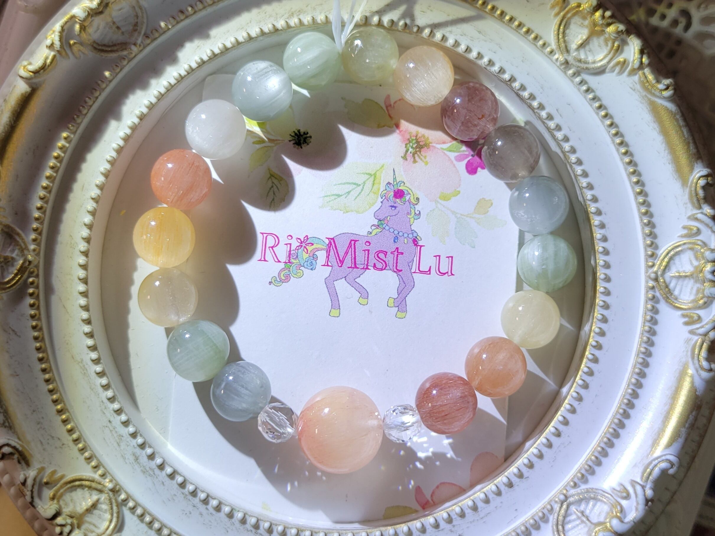 以前、似たような色合いのレインボーサゲニティックブレスレットが完売してから、たくさんお問い合わせをいただきました。