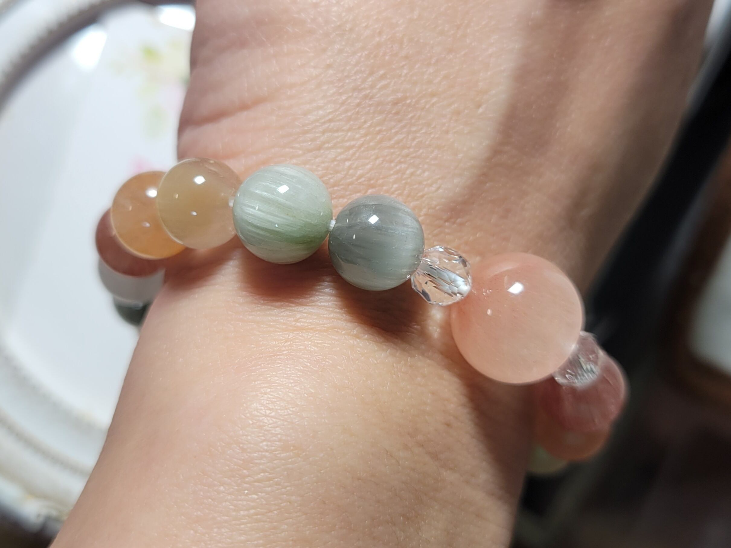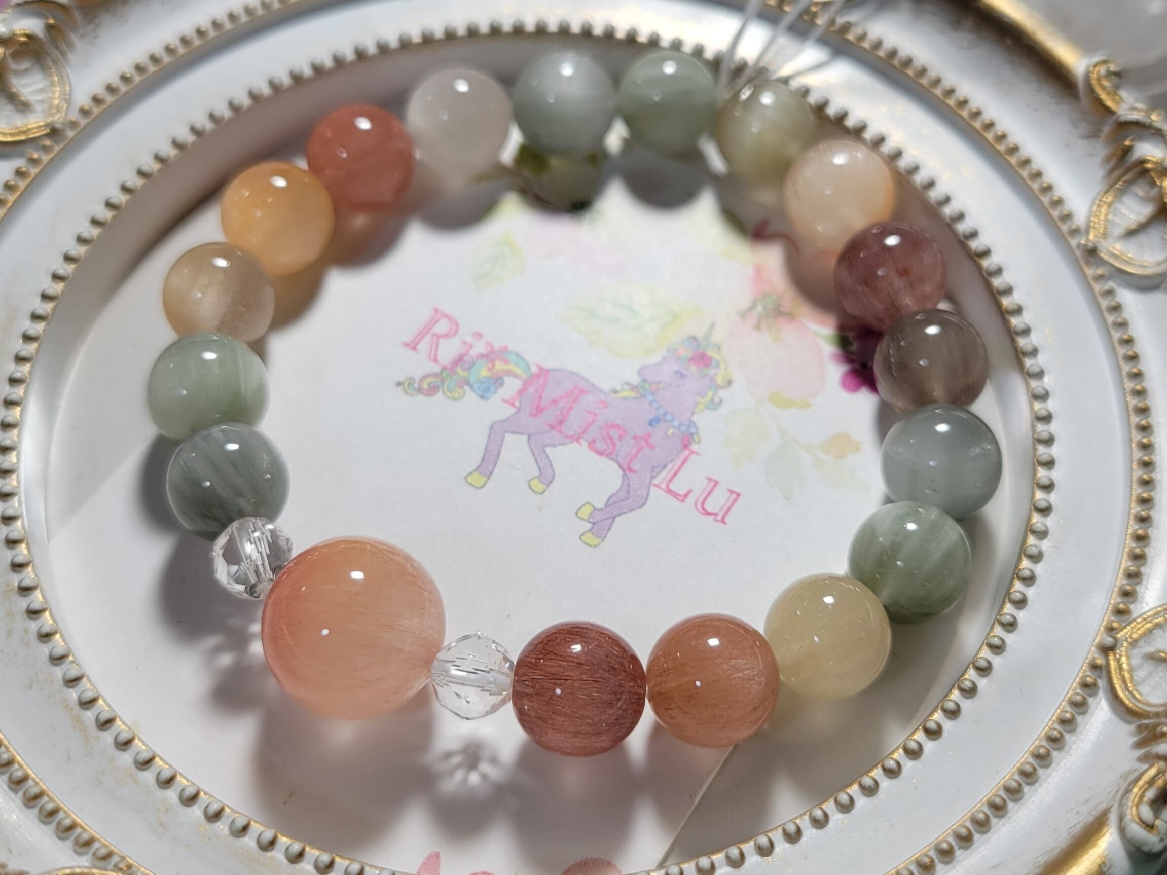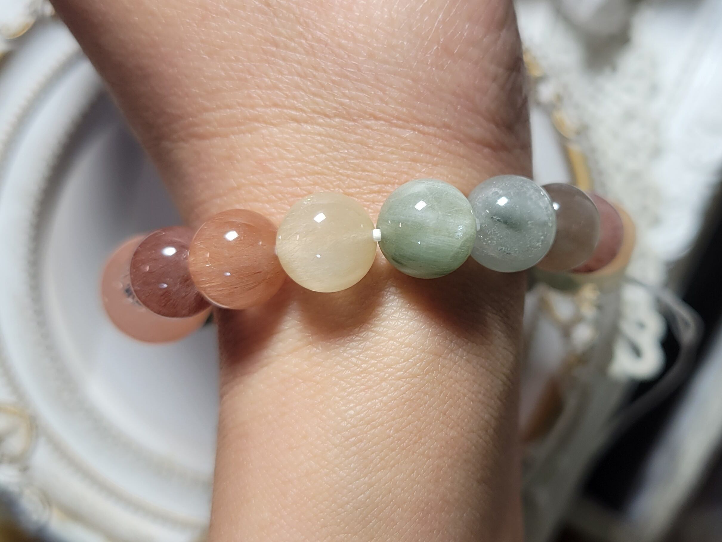 以前、似たような色合いのレインボーサゲニティックブレスレットが完売してから、たくさんお問い合わせをいただきました。